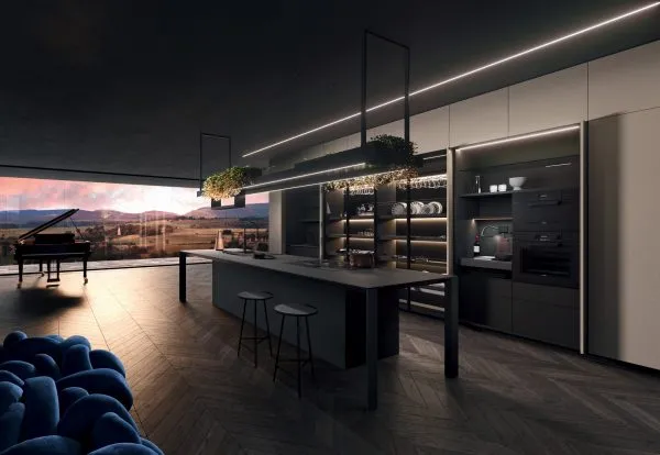 Коллекцию завершает новая система хранения Sipario с четырьмя выдвижными дверцами; которые могут быть сконфигурированы внутри в различных вариантах; включая решение со встроенной вытяжкой.