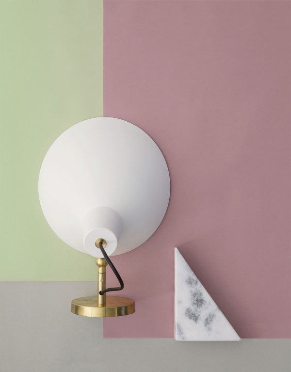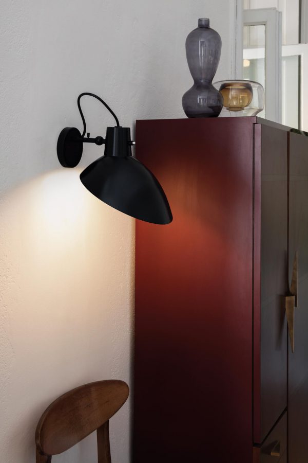 Модель Wall установлена на латунном приспособлении; позволяющем поворачивать отражатель на 350 градусов; а угол поворота – 160 градусов. Алюминиевый плафон с обрезной кромкой на латунном основании можно поворачивать на 350о и наклонять на 160о. Регулируемое основание позволяет создавать прямое или рассеянное освещение в комнате. В качестве источника света используется 1 светодиодная лампа мощностью 7 Вт с обычным цоколем E27. Бра может быть белым или черным.