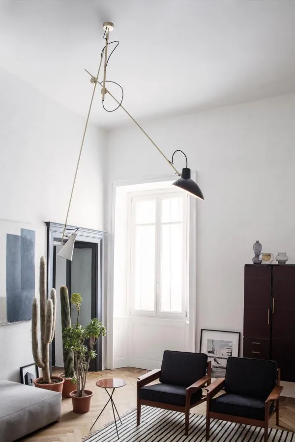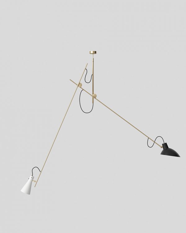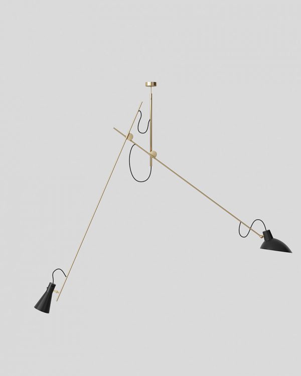 Модель Suspension – это сложный светильник с характерной конструкцией с двумя штангами. Это тип кинетического объекта; созданный для использования принципа равновесия; поэтому центральный полюс может найти свое равновесие не перпендикулярно потолку. Привлекательный игривый дизайн способствует созданию динамичных световых композиций. Приспособление и отражатели можно отрегулировать в различных положениях; что позволяет использовать широкий спектр как нисходящего; так и восходящего освещения.