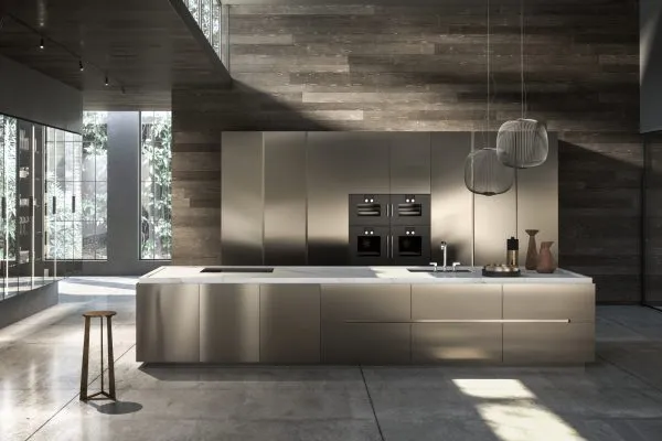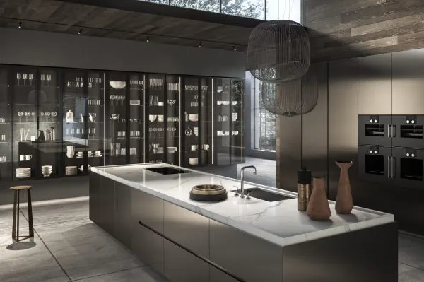 Современная кухня Contempora от Aster Cucine со множеством модулей и вариантов конфигурации. Философская идея этой кухни – путешествия по разным странам; которые вдохновили дизайнеров марки. Мир во всем его многообразии нашел отражение во множестве вариантов кухонь этой системы. Столешница и фасады могут быть выполнены из шпона; лакированного МДФ; матового или глянцевого стекла. В зависимости от материала и цвета отделки; кухни коллекции Contempora предлагаются следующих модификаций: Ulivo; Jagged oak; Vetro; Noce Canaletto; Tineo; Smoked oak; Yellow Pine; Acciaio; Laccato; Ebano natural; Palissandro; Rovere; Larice; Foglia Oro / Argento.