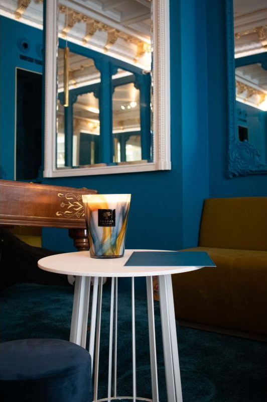 Часть лимитированной коллекции Nirvana; ароматическая свеча Holy; несомненно; больше всего вызывает элементы. Выдутое вручную стекло с синими штрихами позволяет пламени излучать успокаивающий свет в ваш интерьер.