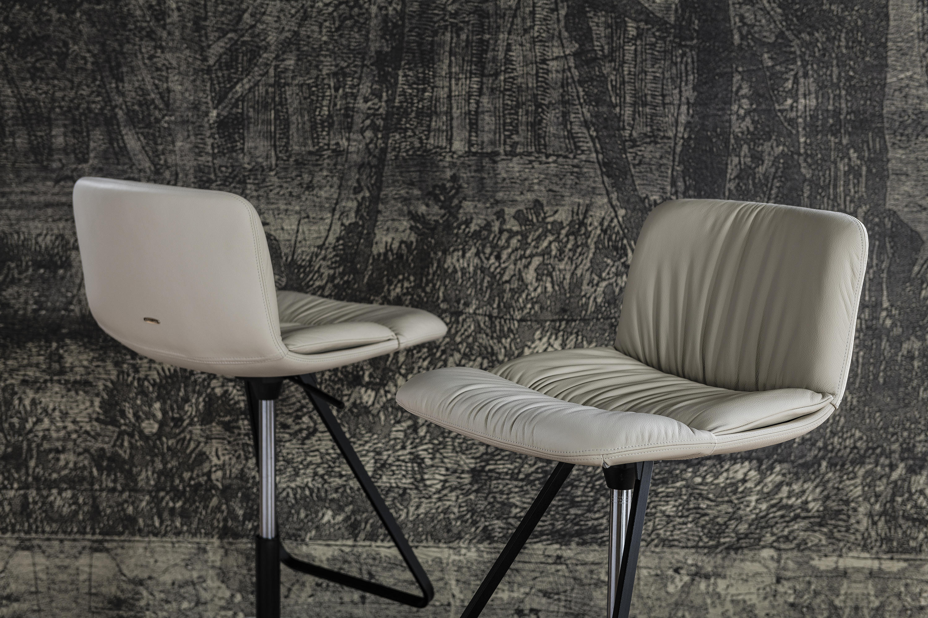 Барный стул с крутящейся и регулируемой базой в нержавеющей сатинированной стали, опора, подставка для ног и поршень в хромированной стали. Сиденье может быть обито в ткань, синтетический нубук, мягкую или синтетическую кожу цветов согласно образцам. Барный табурет Axel, разработанный студией Archirivolto, является выражением комфортного дизайна, характерного для всех продуктов Cattelan Italia. Удобное сиденье покрыто мягкой набитой подушкой. Складки придают корпусу ритм и объем, что делает его незаменимым табуретом со спинкой на кухне с полуостровом или в проекте дизайна интерьера. Сверхлегкие, крутящиеся, с регулируемой высотой, подставкой для ног и спинкой: кухонные табуреты Axel и Axel X, которые различаются по форме основания, имеют все необходимое и по праву считаются изысканным предметом современного дизайна.