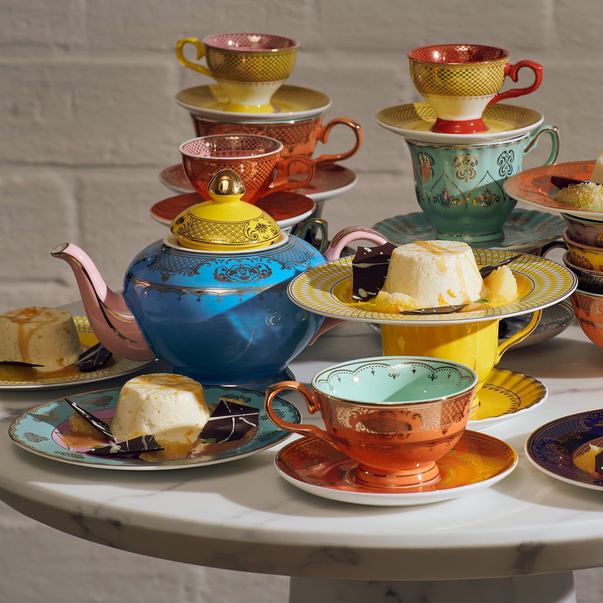Чайные пары Grandpa от PolsPotten созданы из фарфора, покрытого глазурью. Каждая чайная пара украшена золотым узором в восточном стиле, 4 разного цвета и дизайна. Чайная церемония может быть не только в ресторане или специальном месте. Устроить чаепитие по всем правилам можно и дома, для этого вам понадобиться красивый чайный сервиз. Чайный набор «Дедушка» гармонично дополнит пространство или станет акцентной деталью в вашем интерьере.