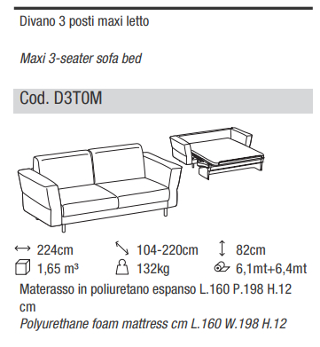 - Диван - кровать BEAUTY от Ditre Italia; матрас из вспененного полиуретана 25 см; 224 х 104/220 х h82 см.