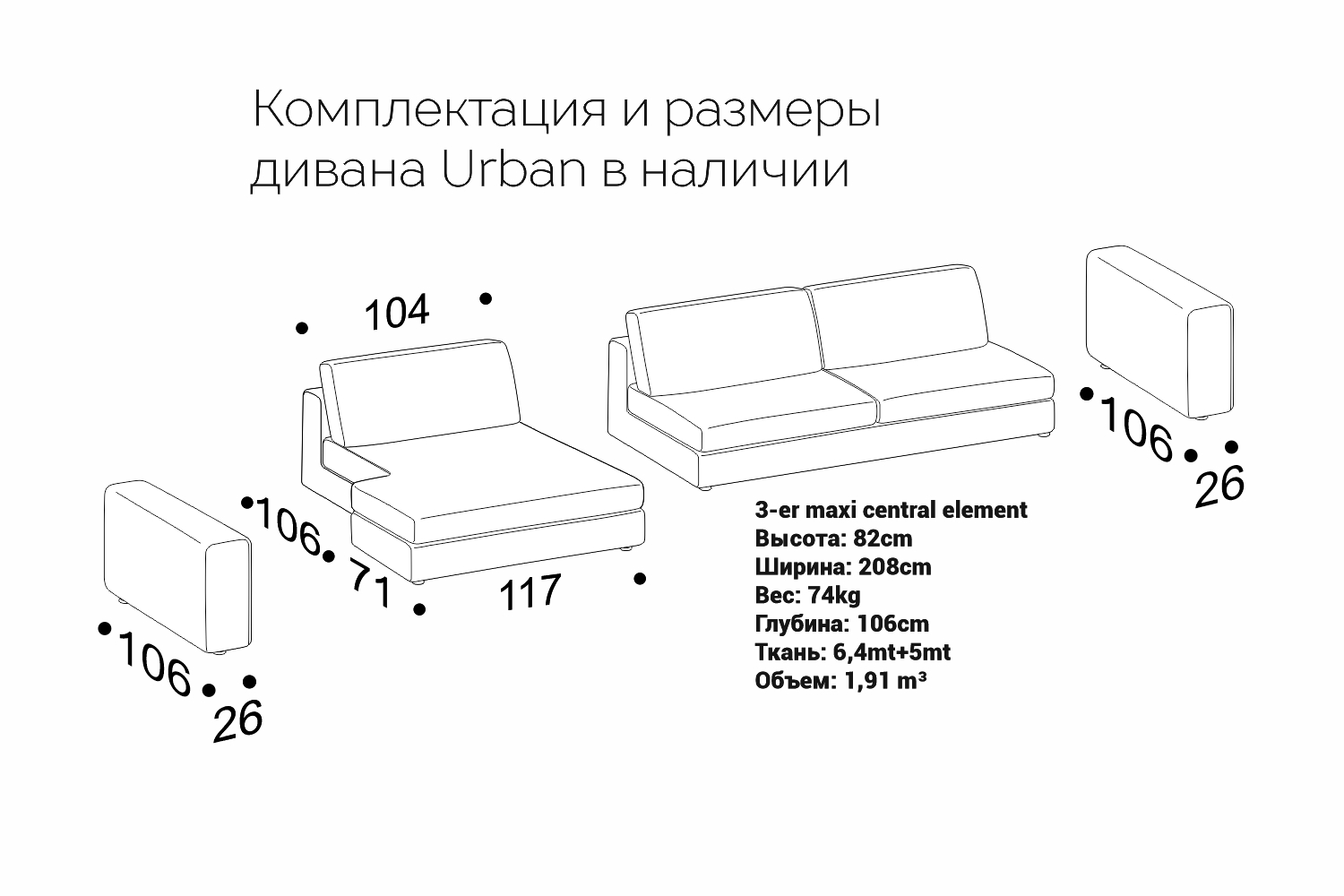 - Модульный итальянский диван URBAN 2.0 от Ditre Italia, 3-х местный элемент и шезлонг, серая ткань, 377х106/177хh82 см