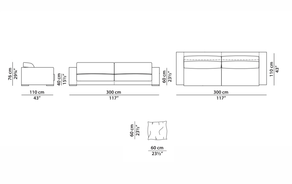 Отделка: натуральный черный нубук. Включает 2 подушки 60 х 60 см.