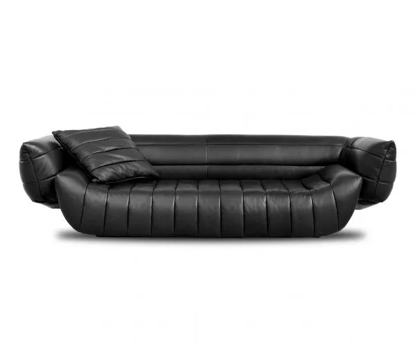 Каркас из фанеры чилийской ели. База из ели, окрашенная в черный цвет. Наполнитель – полиуретановая пена разной плотности в чехле из акрилового волокна. Пружинное сиденье на плетенных эластичных лентах, с каучуковым покрытием. Обивка сделана путем сборки кожаных полос пришитых к подложке из акрилового волокна. Создает ощущение легкости и воздушности.