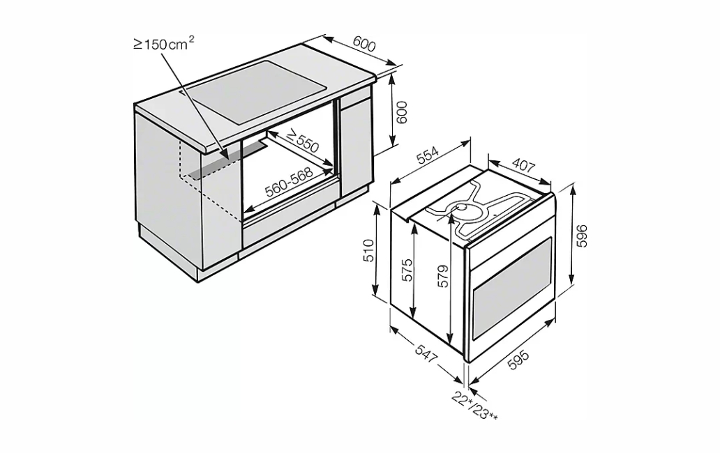 Размеры ниши для встраивания, ВхШхГ (см): 60 х 60 х 55