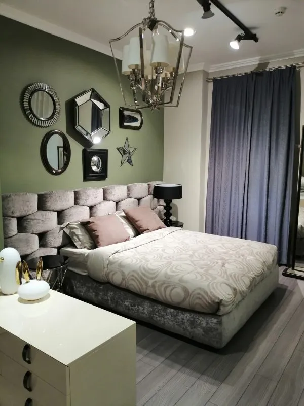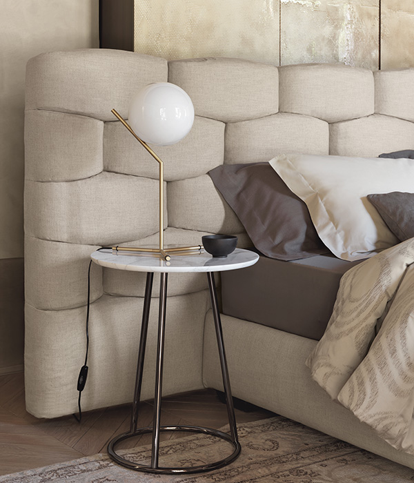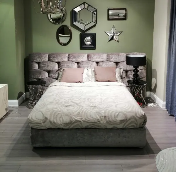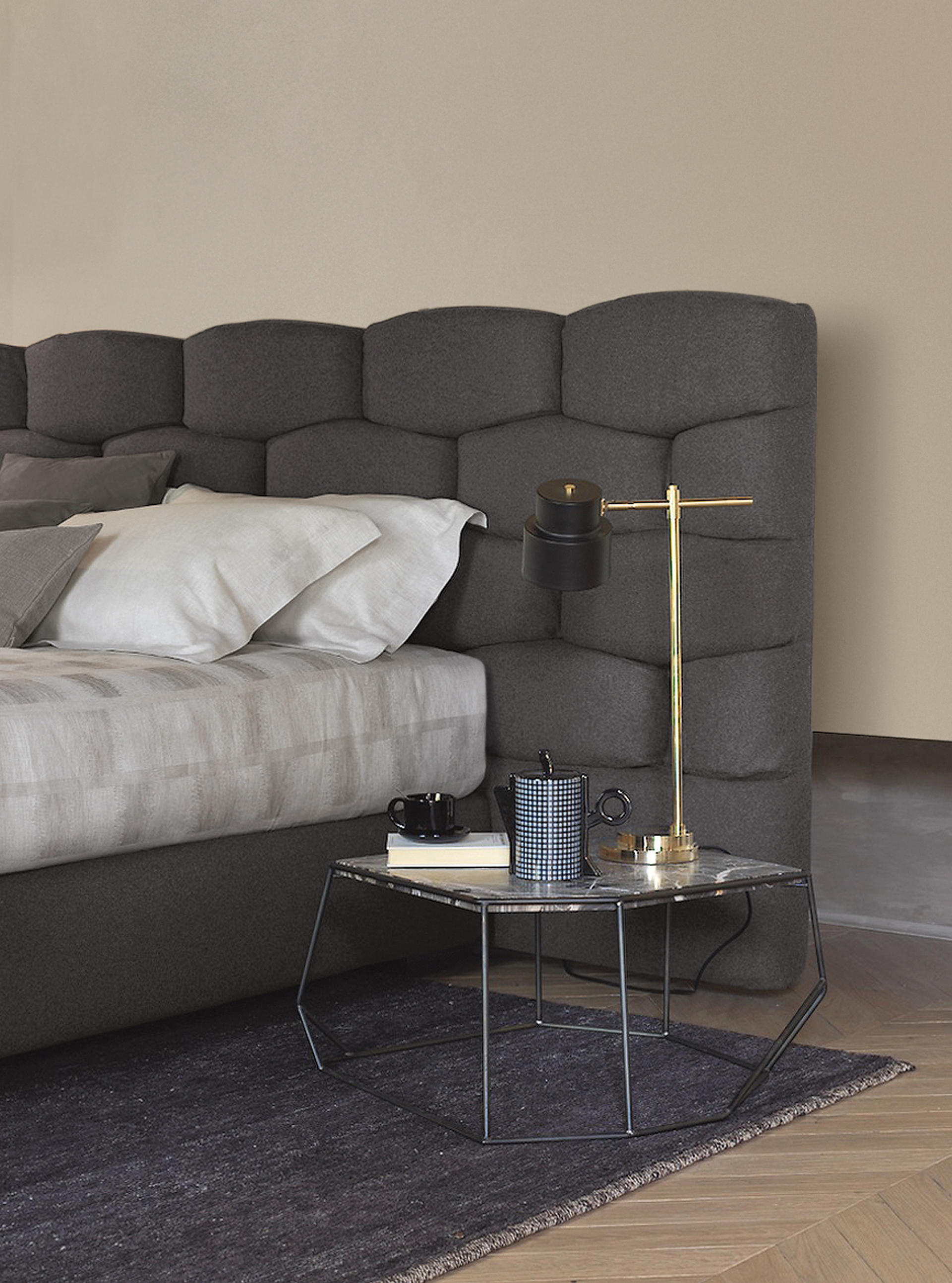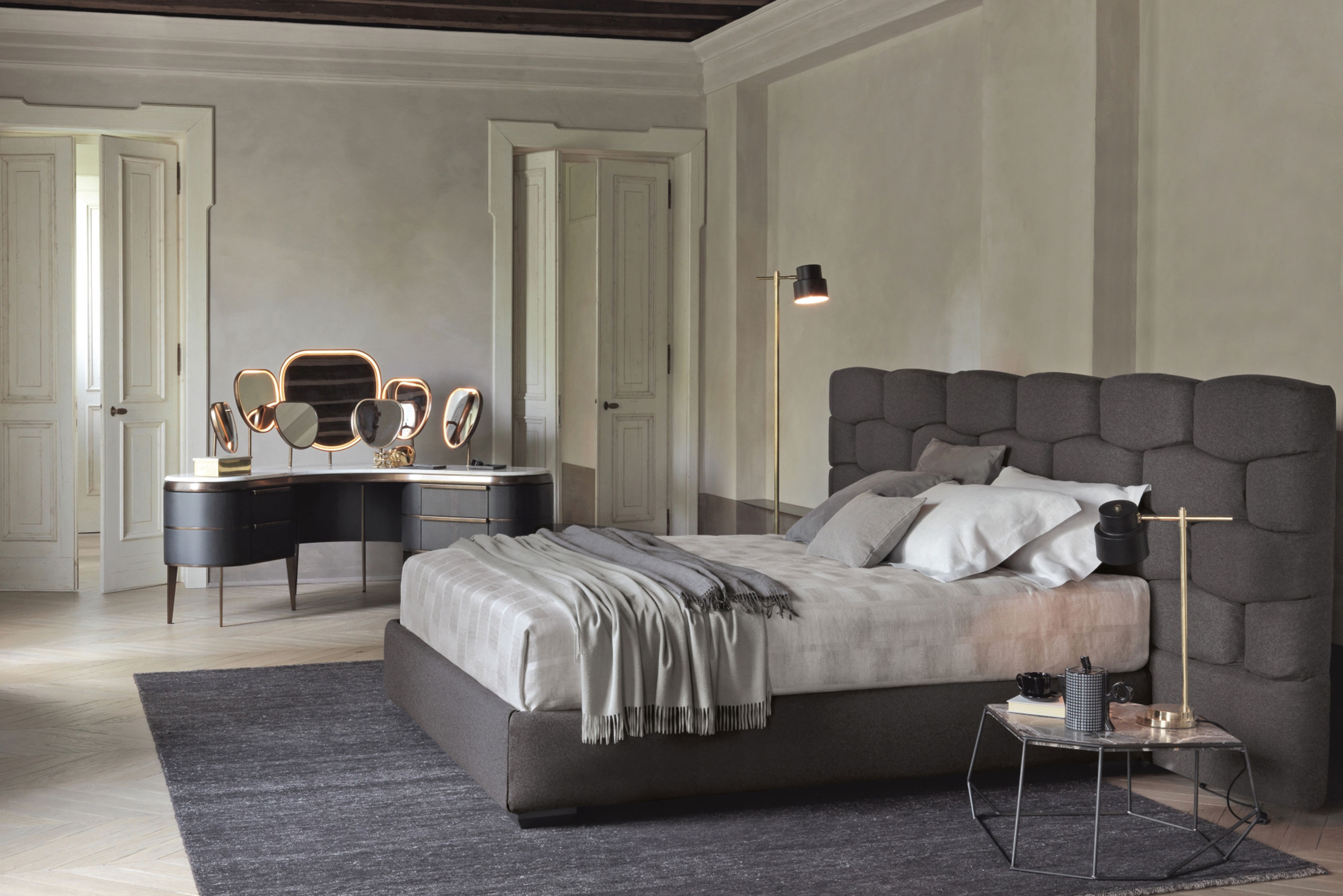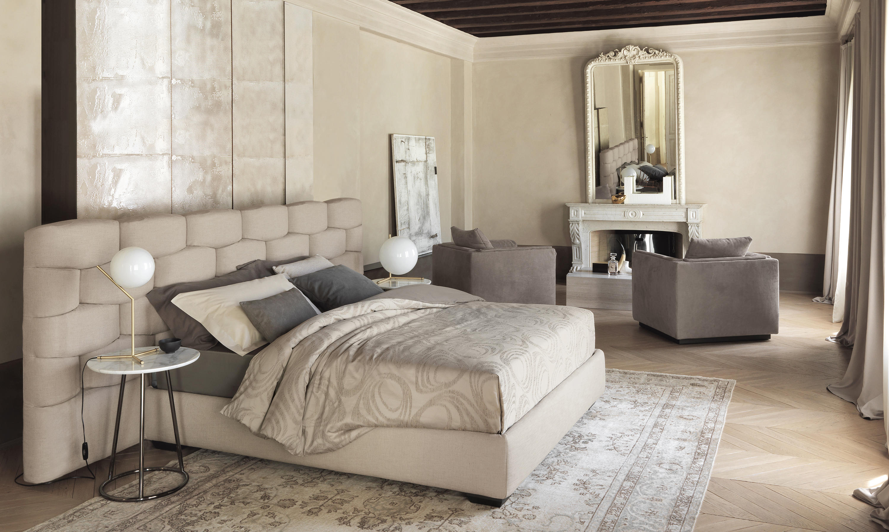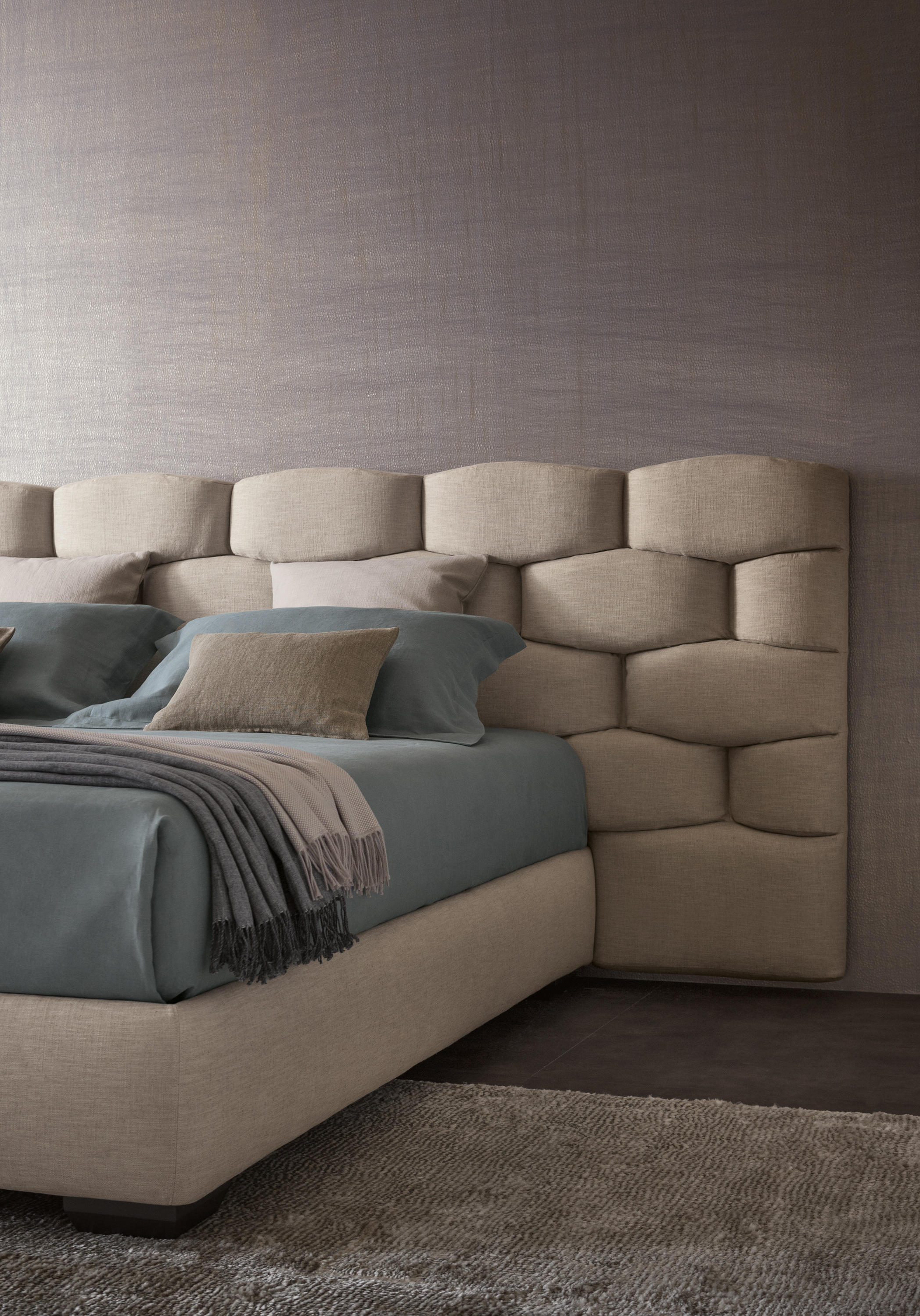 Элегантная двуспальная кровать Majal изготовлена известным итальянским брендом Flou. Дизайн разработал Карло Коломбо. Мебель отличается оригинальной формой изголовья, составленного из мягких геометрических фрагментов. В производстве использован высококачественный плотный текстиль и набивной материал.