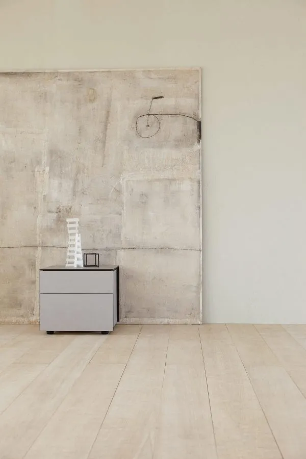 Juta; разработанная Пинуччио Боргоново для Flou; представляет собой прикроватную тумбочку со специальной устойчивой к царапинам поверхностью; доступной в 5 различных вариантах.