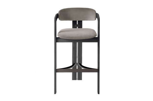 Барный стул 0419 с черной лакированной структурой из массива ясеня с открытыми порами. Также доступны из натурального ясеня; окрашенного под табак или белого лакированного ясеня с открытыми порами. Сиденье и спинка с внутренней структурой из дерева и субпродуктов с набивкой из недеформируемого пенополиуретана различной плотности. Обтянут тканью или кожей по образцу. Несъемный чехол.