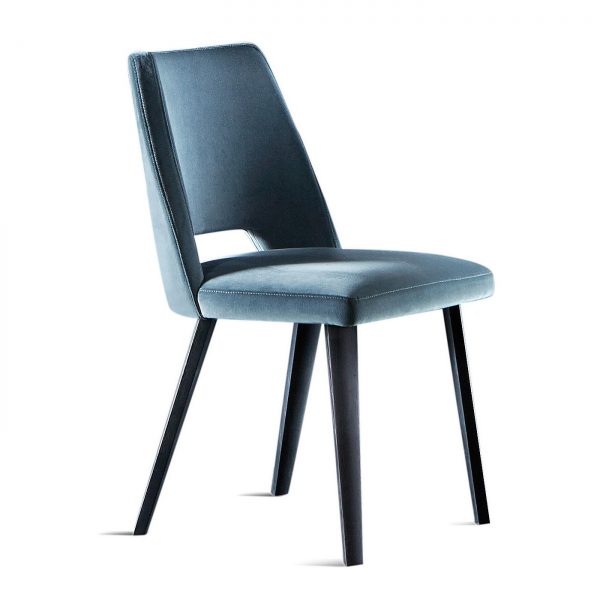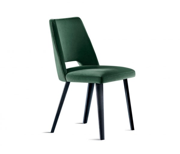Стул с сиденьем и спинкой; обтянутыми тканью или кожей по образцу. Ножки из лакированного дуба черного цвета (мод. Layer) с открытыми порами.