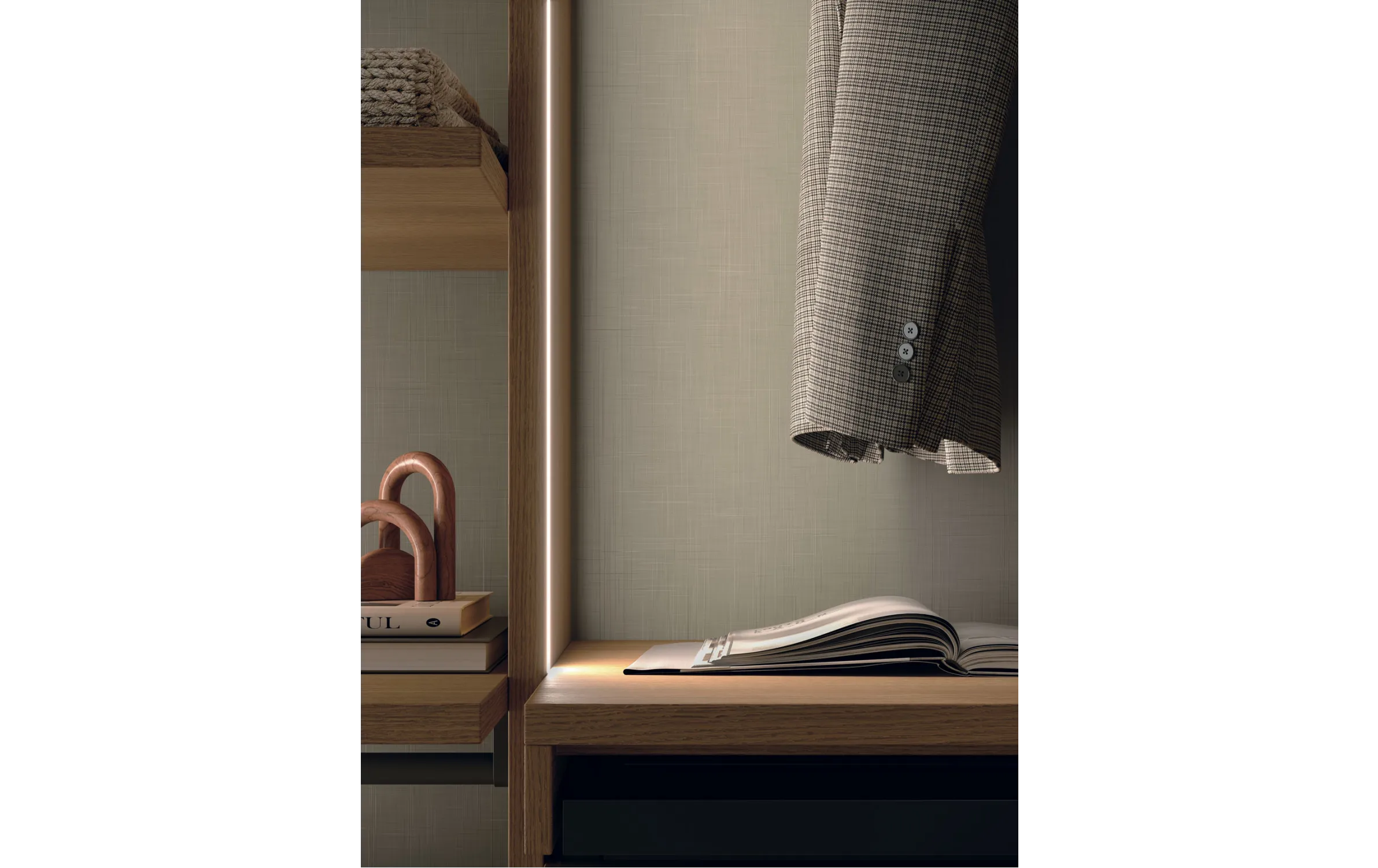 DOXA 210 — это модульная гардеробная система от итальянской фабрики Tomasella, сочетающая в себе минималистичный дизайн и высокую функциональность. Её отличительной чертой являются открытые модули с уменьшенной глубиной боковых панелей, что придаёт конструкции визуальную лёгкость и современный вид.