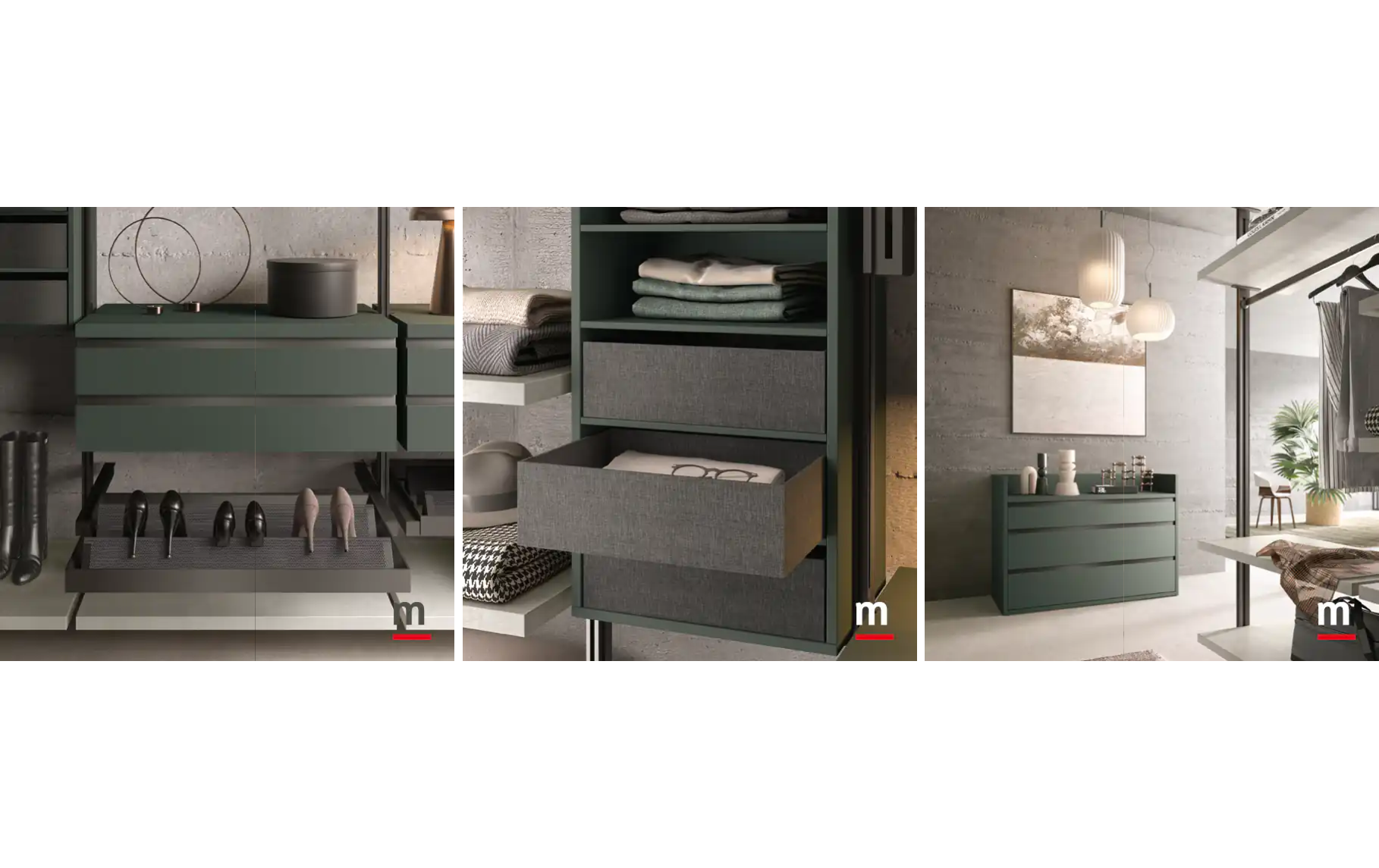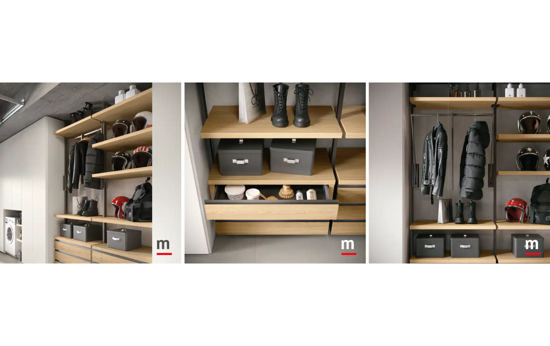 Полки на виду, шкафчики, выдвижные ящики и выдвижные держатели для брюк и обувные секции. cucine.moretticompact.it+15giornonotte.moretticompact.it+15giornonotte.moretticompact.it+15