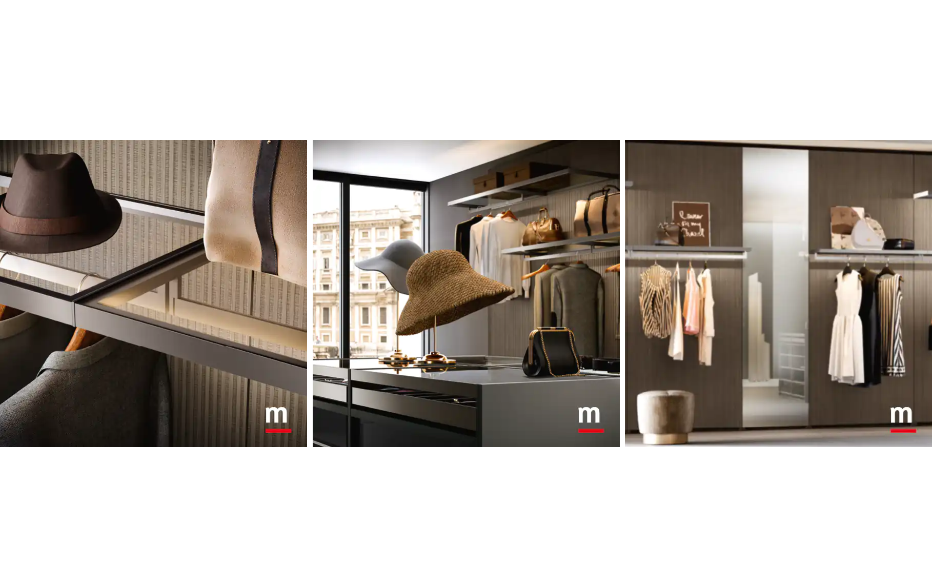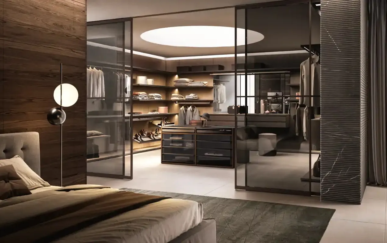 Через профильную систему каркасов (Cremagliera) и фарфоровые панели системы Cabine вы получаете гибкую матрицу хранения — где и вещи, и интерьер хранят свой визуальный баланс.