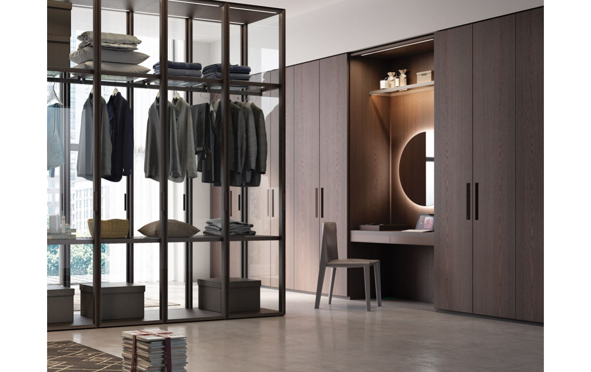 - Итальянский гардеробный шкаф с распашными, складными, раздвижными дверцами, шкаф-купе STRIP от Mobilform для спальни, гардеробной комнаты, прихожей