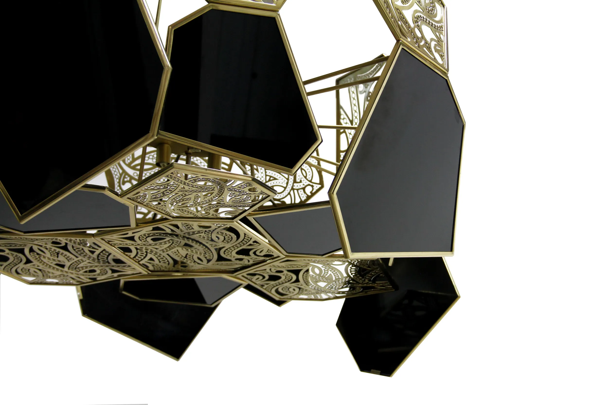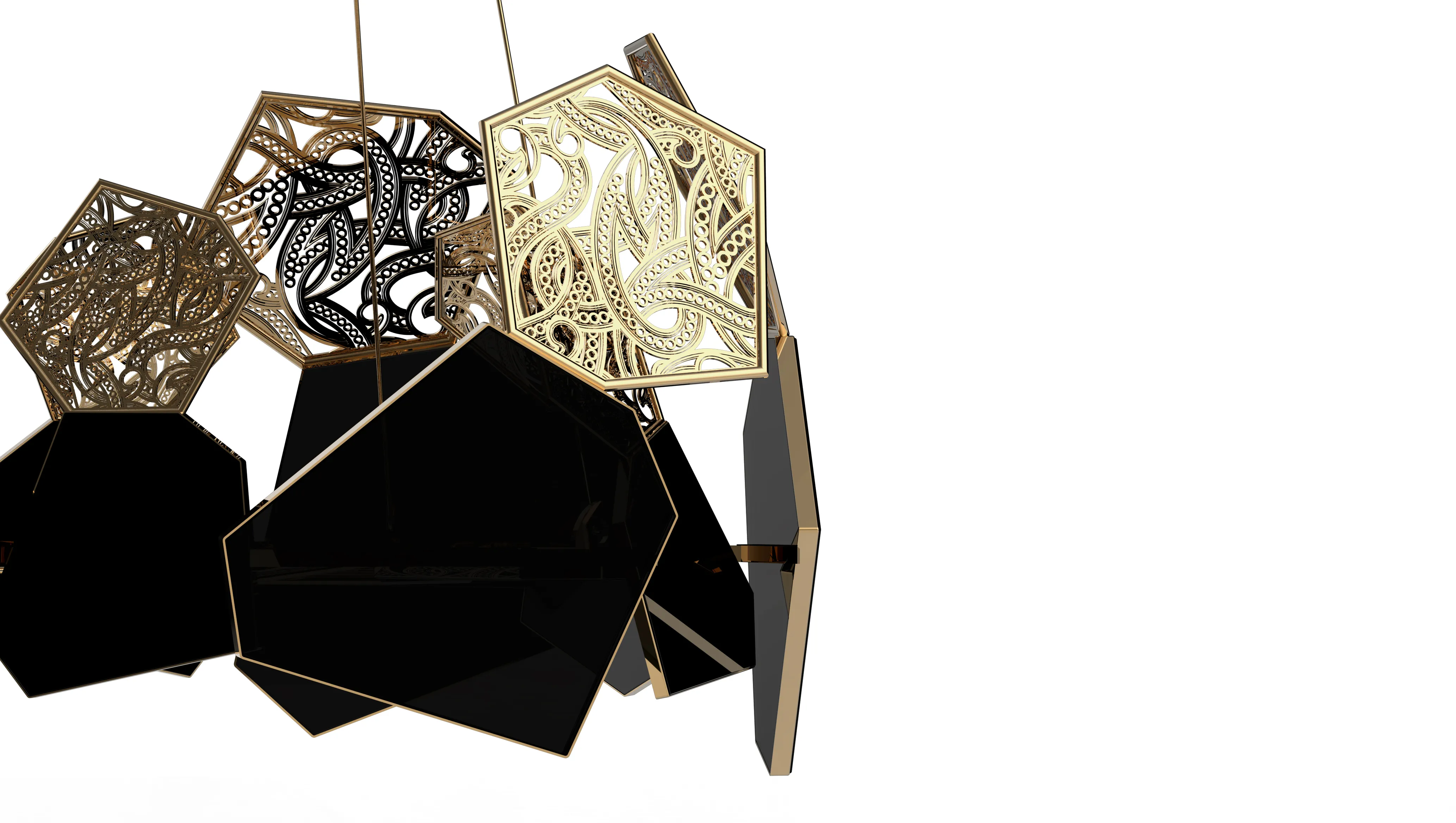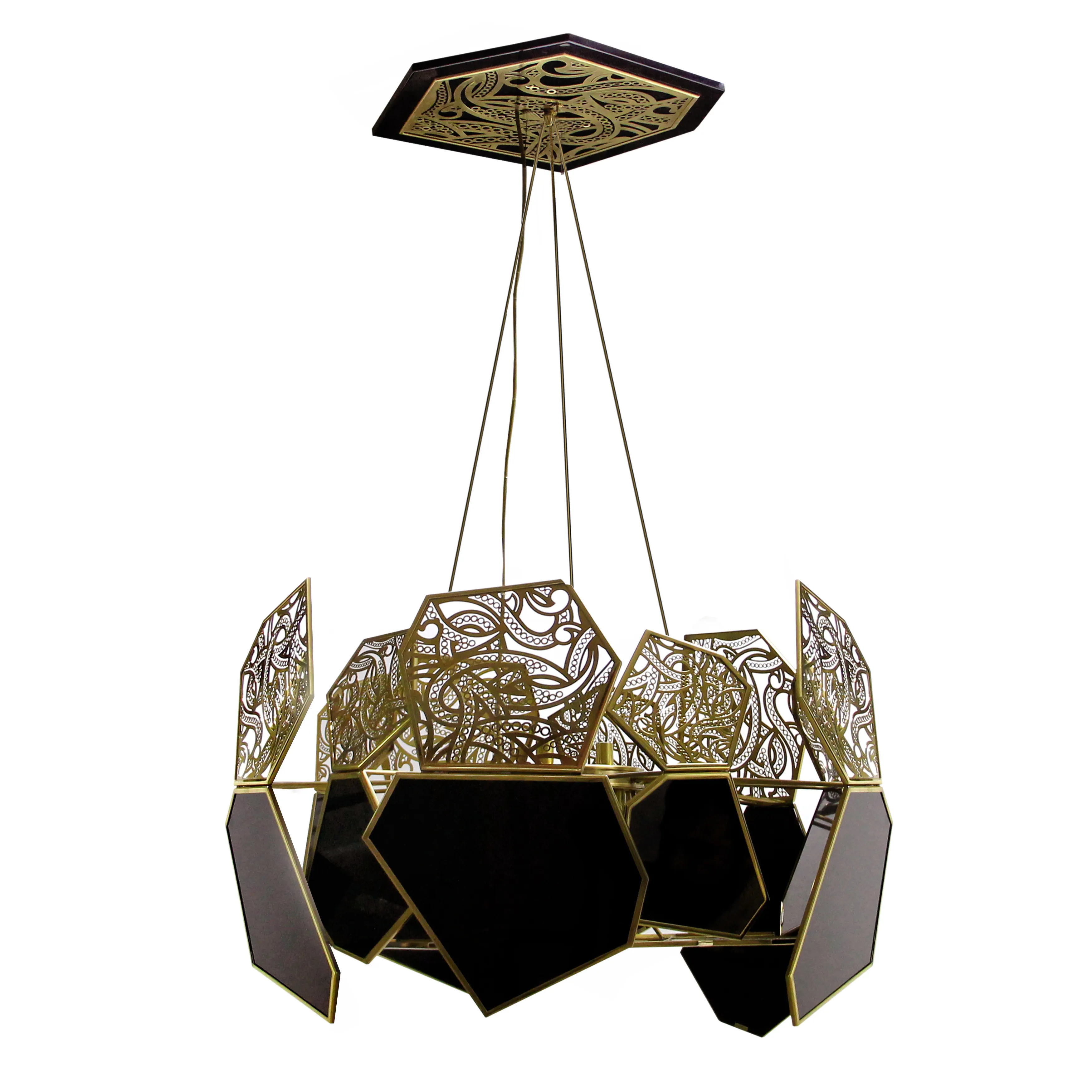 Эта изящная и элегантная люстра завораживает публику. Вы будете очарованы замысловатыми витками и изгибами люстры в золотых спиралях; искусно вплетаясь в четкие полированные линии шестиугольного силуэта. Изящный узор металлических деталей дополняет крашеную деревянную деталь этого изделия.