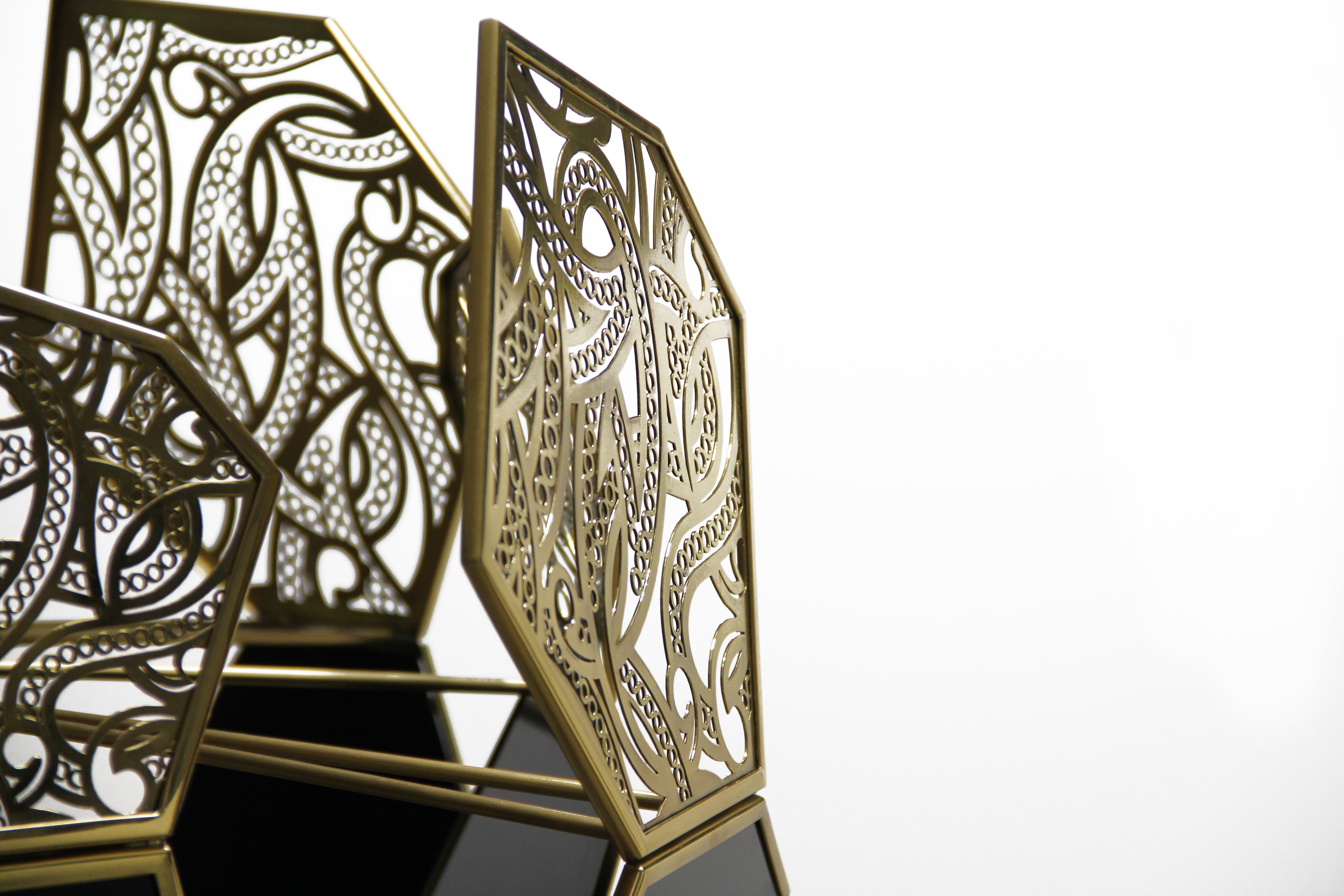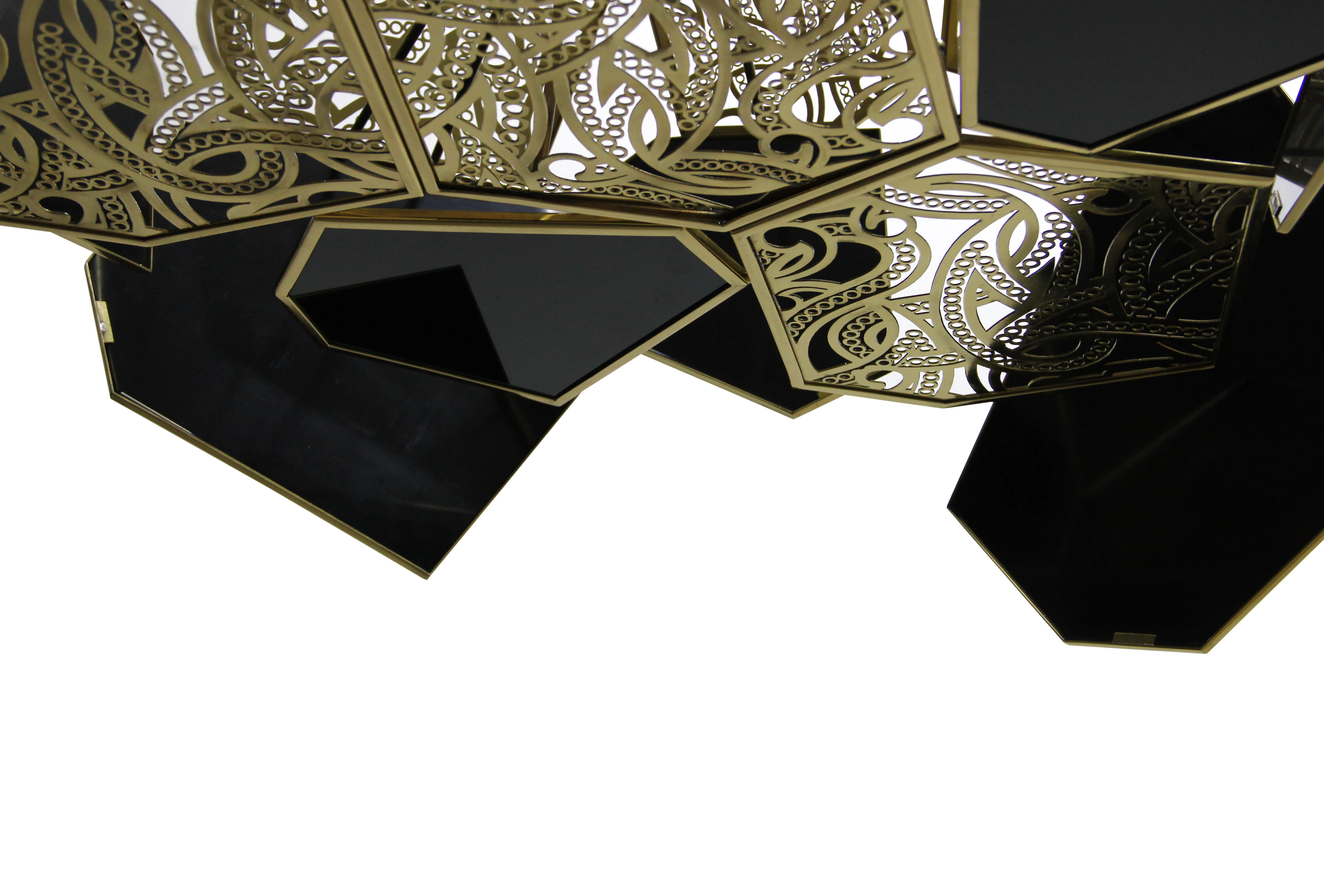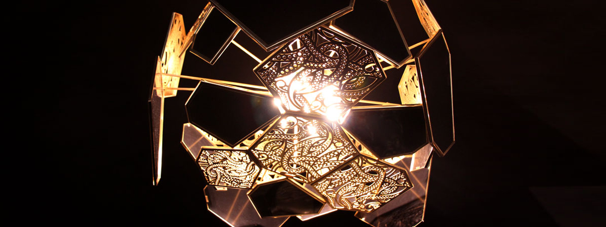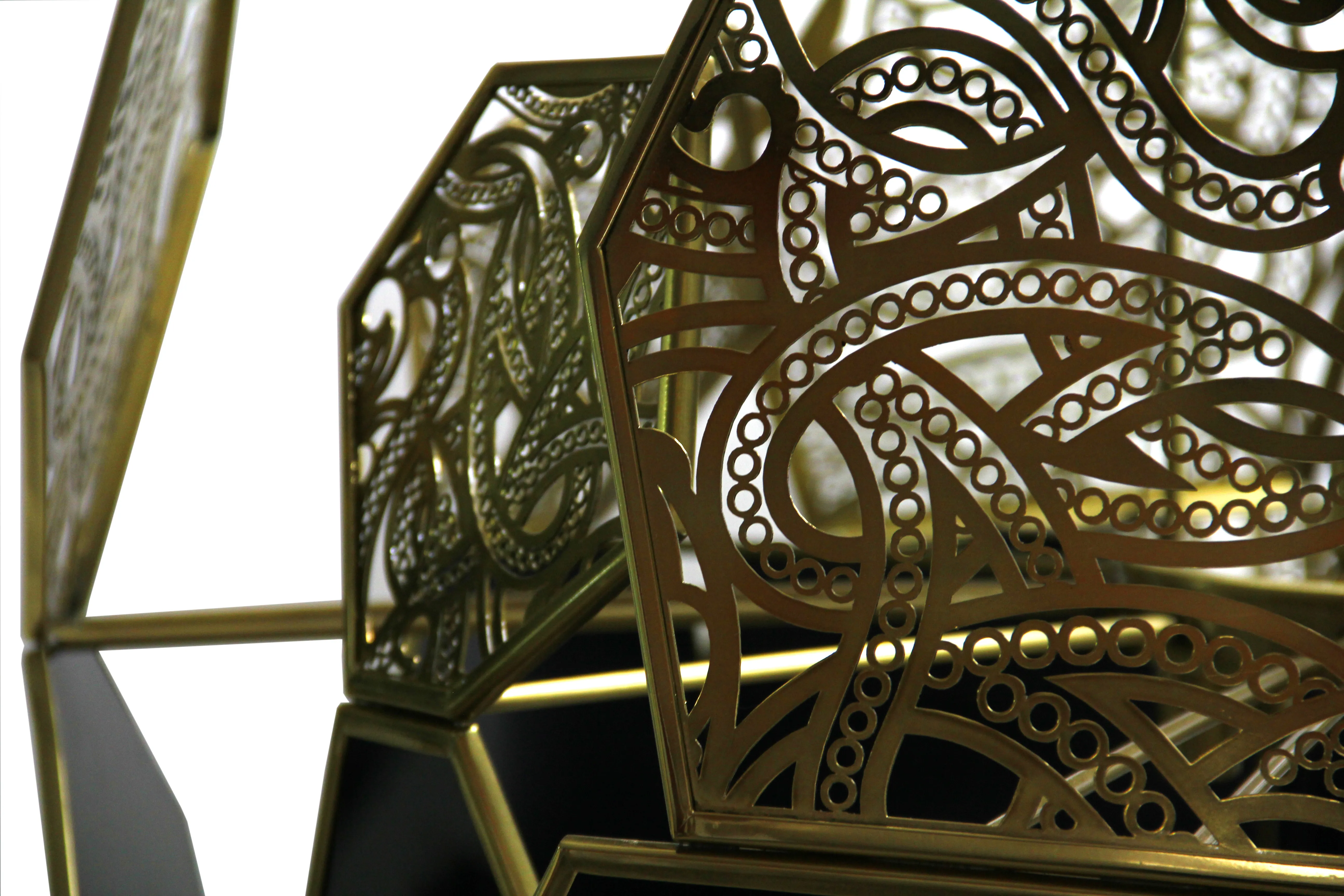 Эта изящная и элегантная люстра завораживает публику. Вы будете очарованы замысловатыми витками и изгибами люстры в золотых спиралях; искусно вплетаясь в четкие полированные линии шестиугольного силуэта. Изящный узор металлических деталей дополняет крашеную деревянную деталь этого изделия.