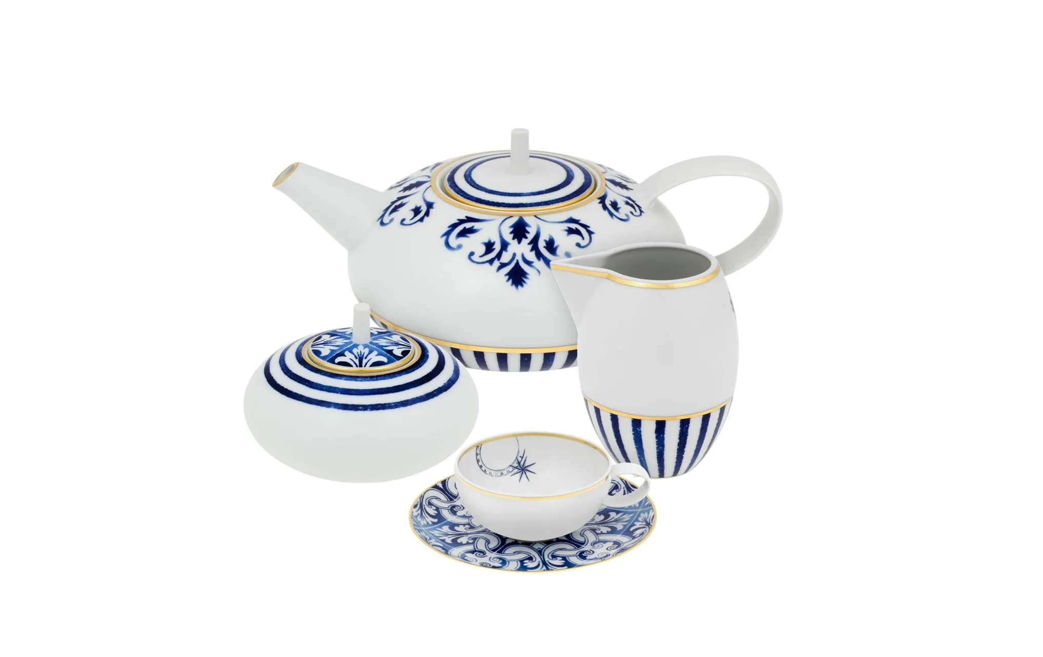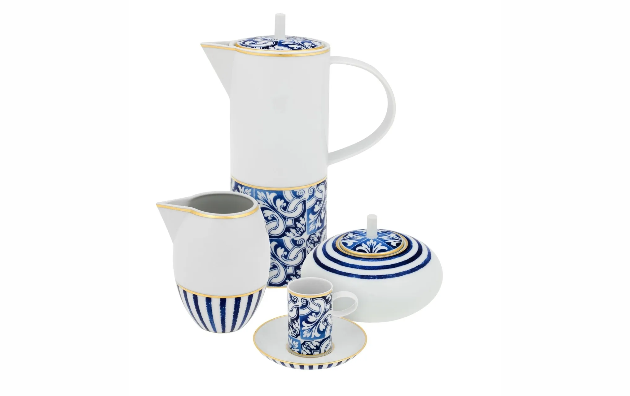 Коллекция Transatlantica, созданная знаменитым бразильским дизайнером Брунно Яхара для португальского бренда Vista Alegre, отражает выразительный морской стиль и украшена вручную нанесенным декором. Изящное сочетание белого и синего оттенков, дополненное изысканным золотым кантом, придает изделиям особую элегантность. Коллекция выполнена из высококачественного португальского фарфора и включает широкий ассортимент предметов, позволяя создать утонченную сервировку.