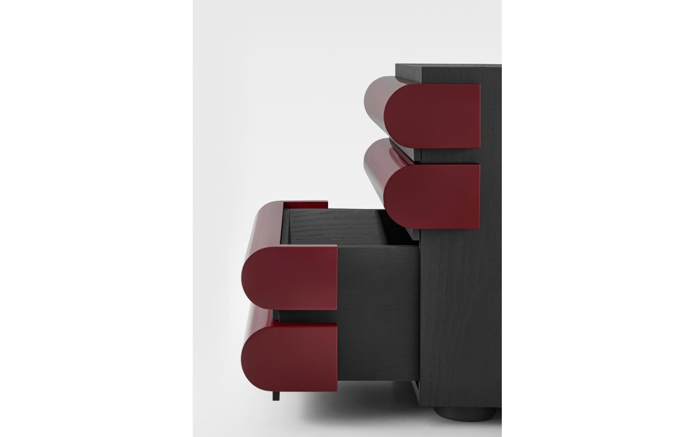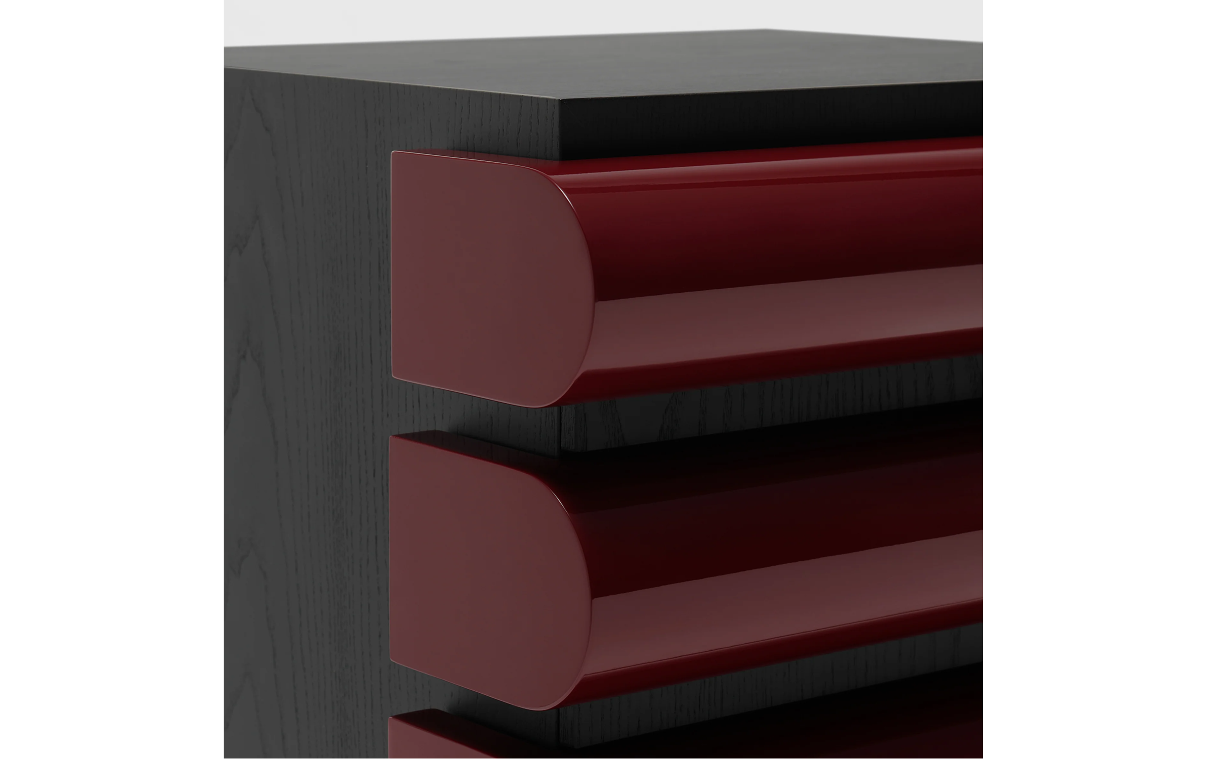 Структура - черный ясень. Ящики: глянцевый бордовый лак.