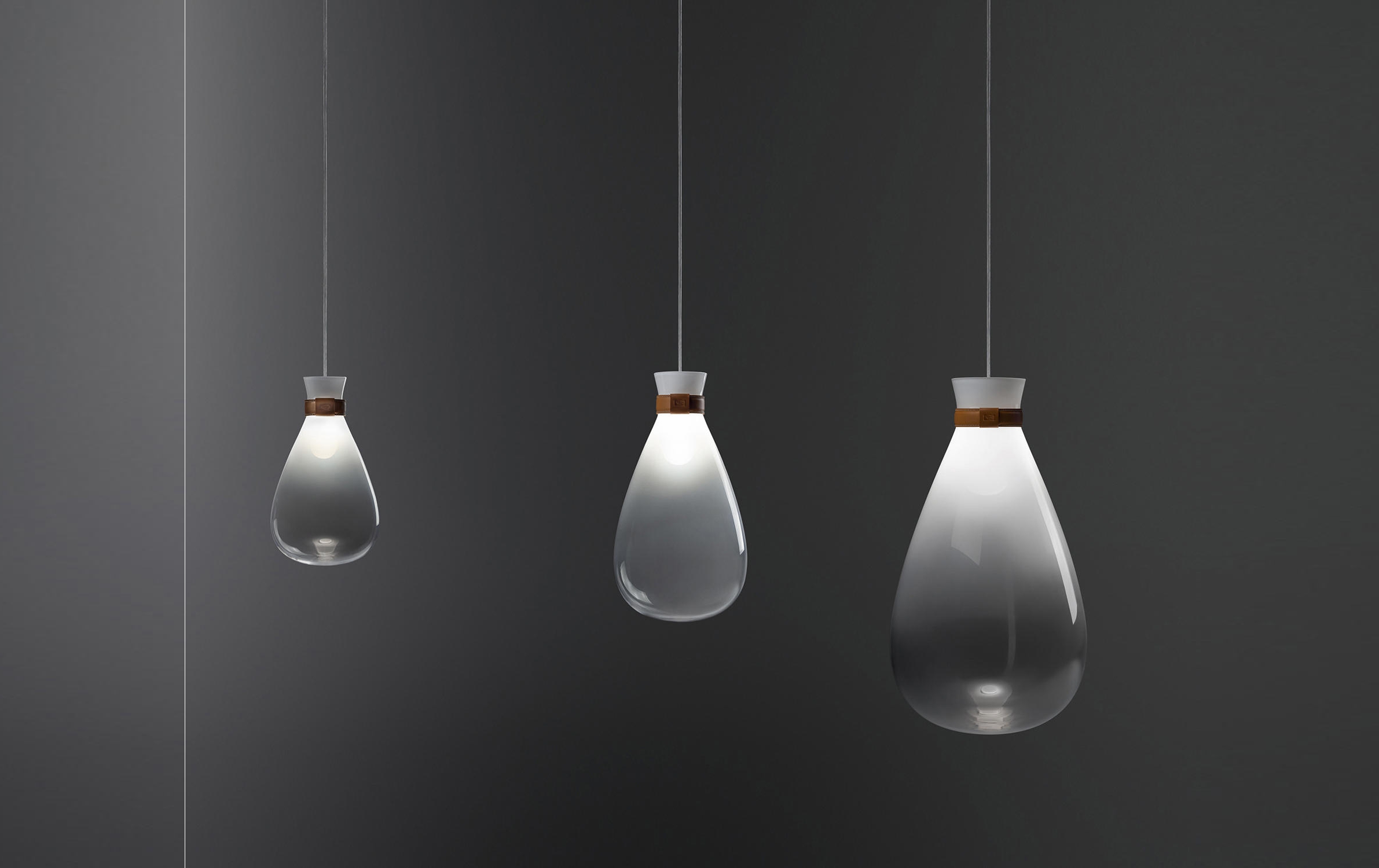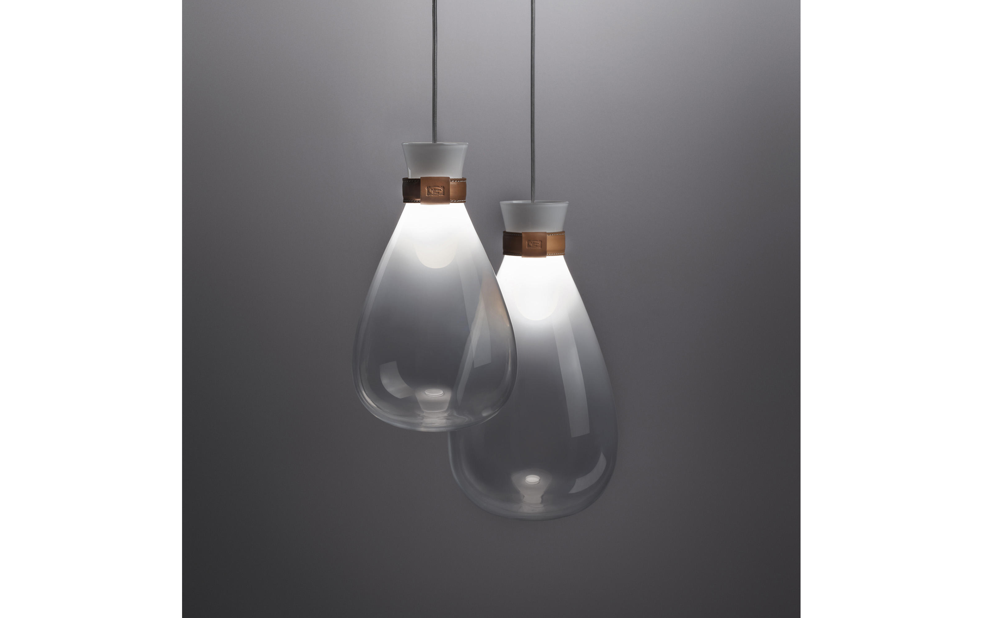 Материалы: выдувное стекло, натуральная кожа Cuoio Saddle Extra, латунь