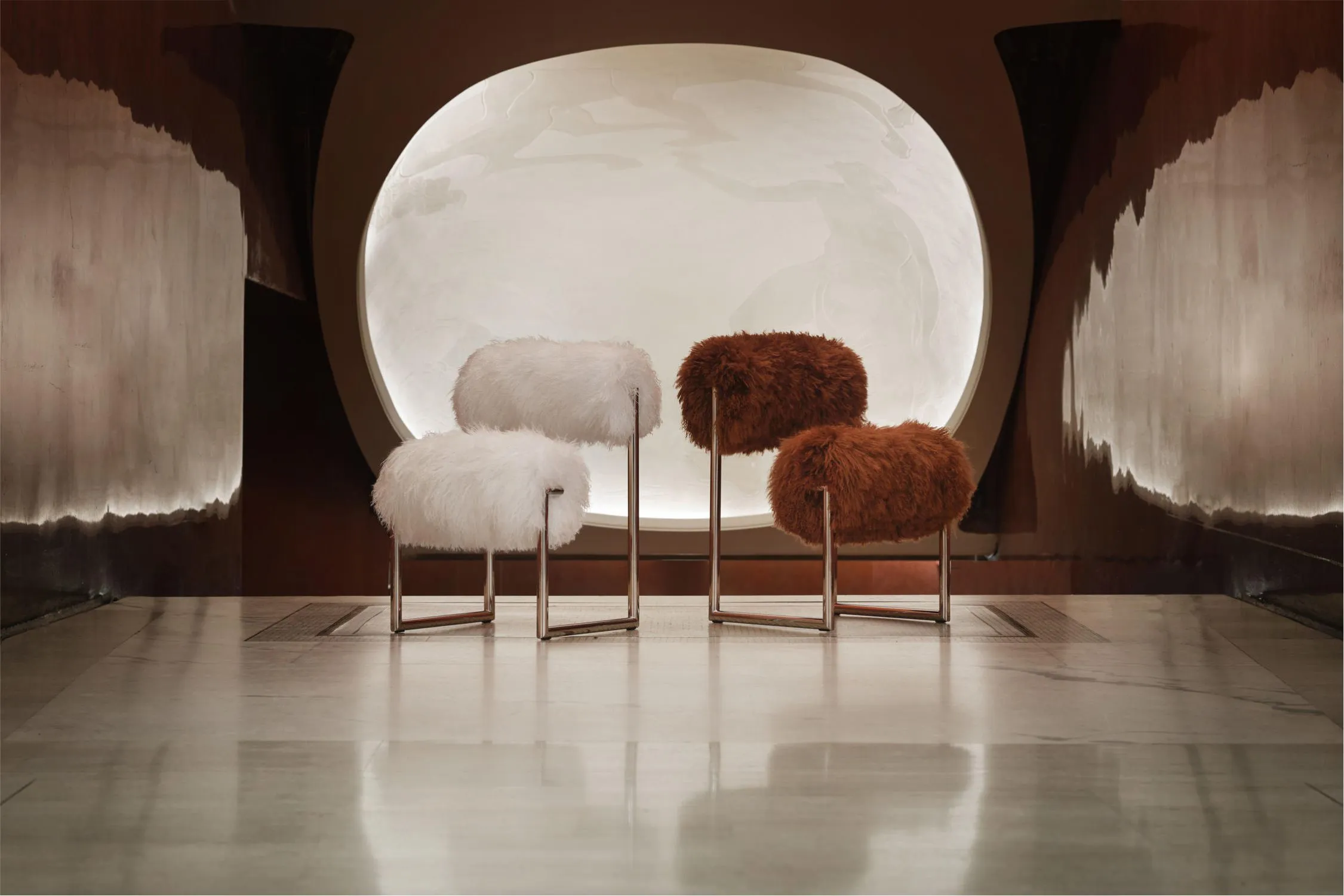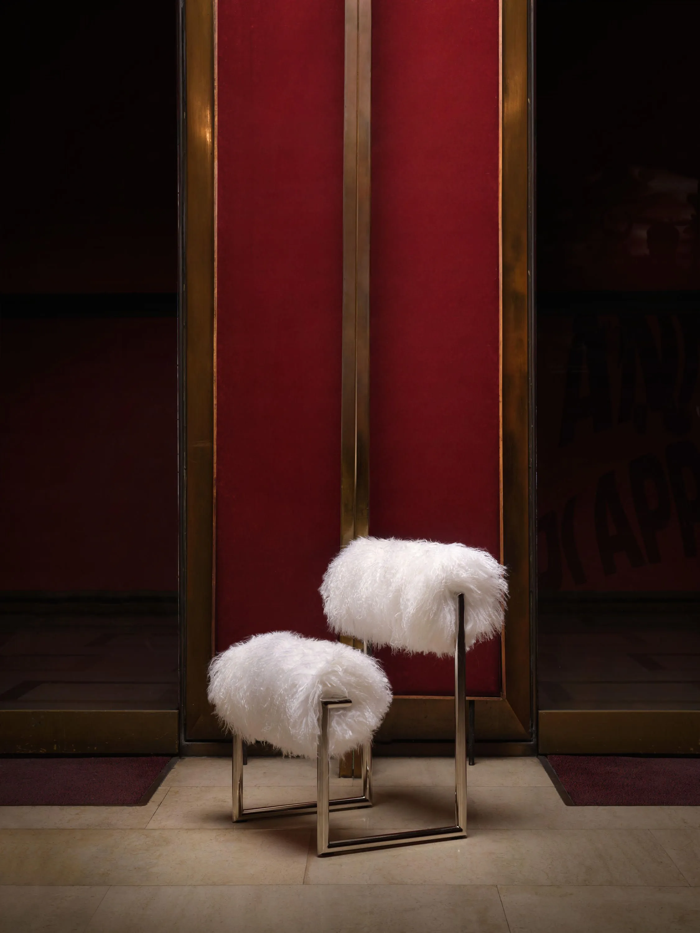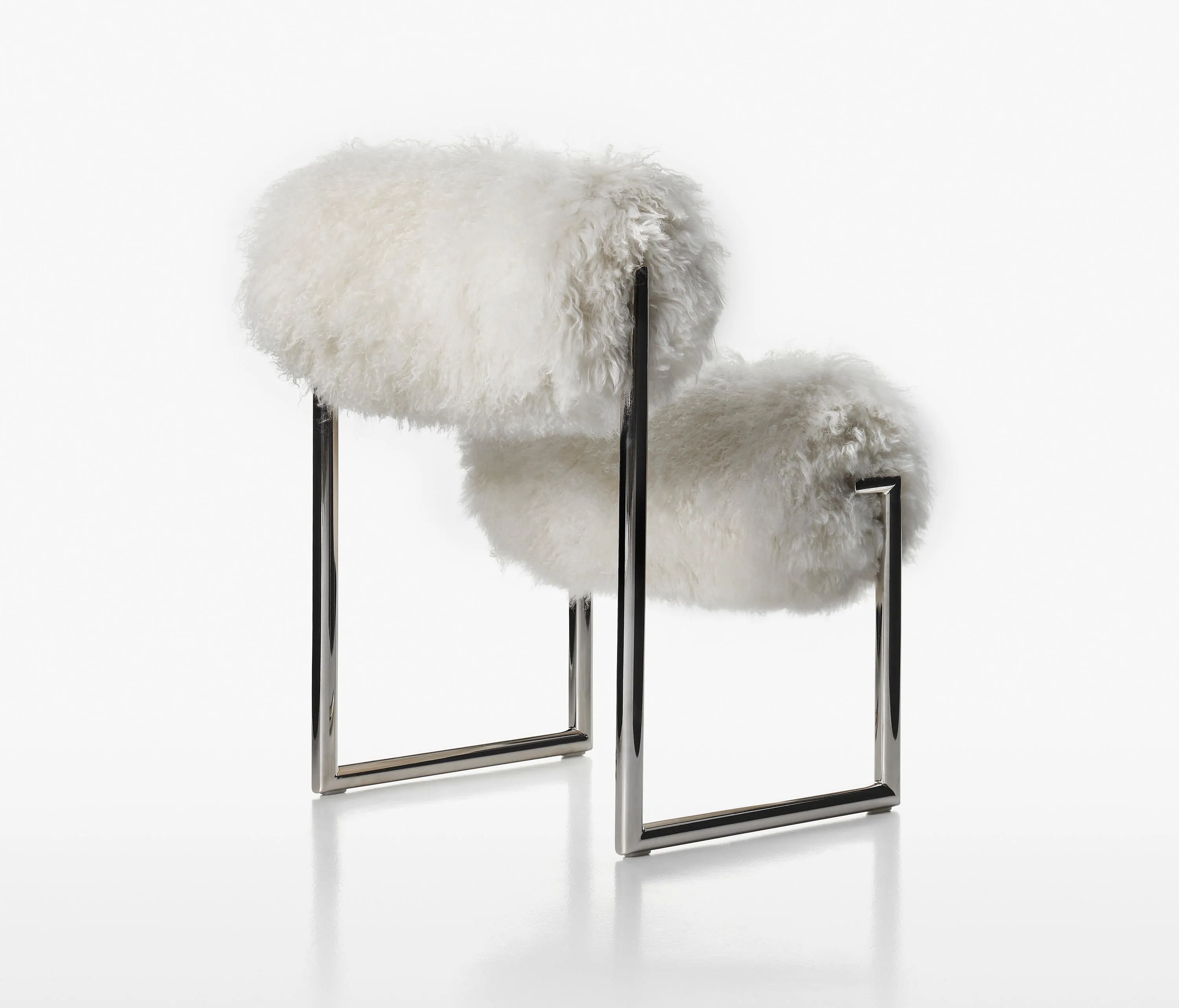 Каркас: хромированная сталь. Отделка: белый монгольский мех.