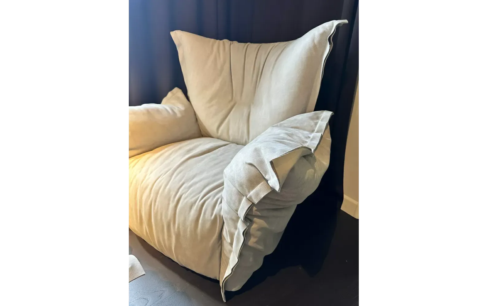 - Премиальная кожа Baxter: Отборная кожа, известная своей легкостью и эластичностью, адаптируется к формам кресла, создавая уникальный пейзаж волн и складок, подчеркивающий аутентичность материала.