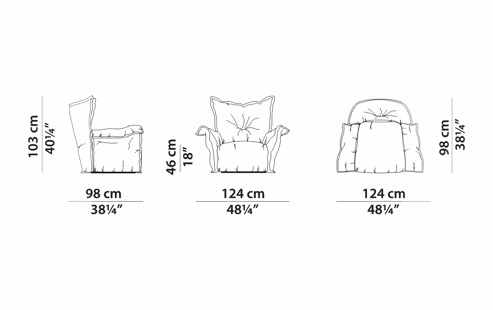 Кресло: 124 x 98 x 103 см (Ш x Г x В).