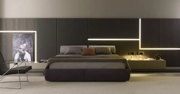 Мягкий каркас кровати со съемным покрытием из ткани; искусственной кожи или кожи – это новое предложение для спальной зоны от MisuraEmme. Универсальный и тонкий элемент; сила которого заключается во взаимодействии со стеновыми панелями.