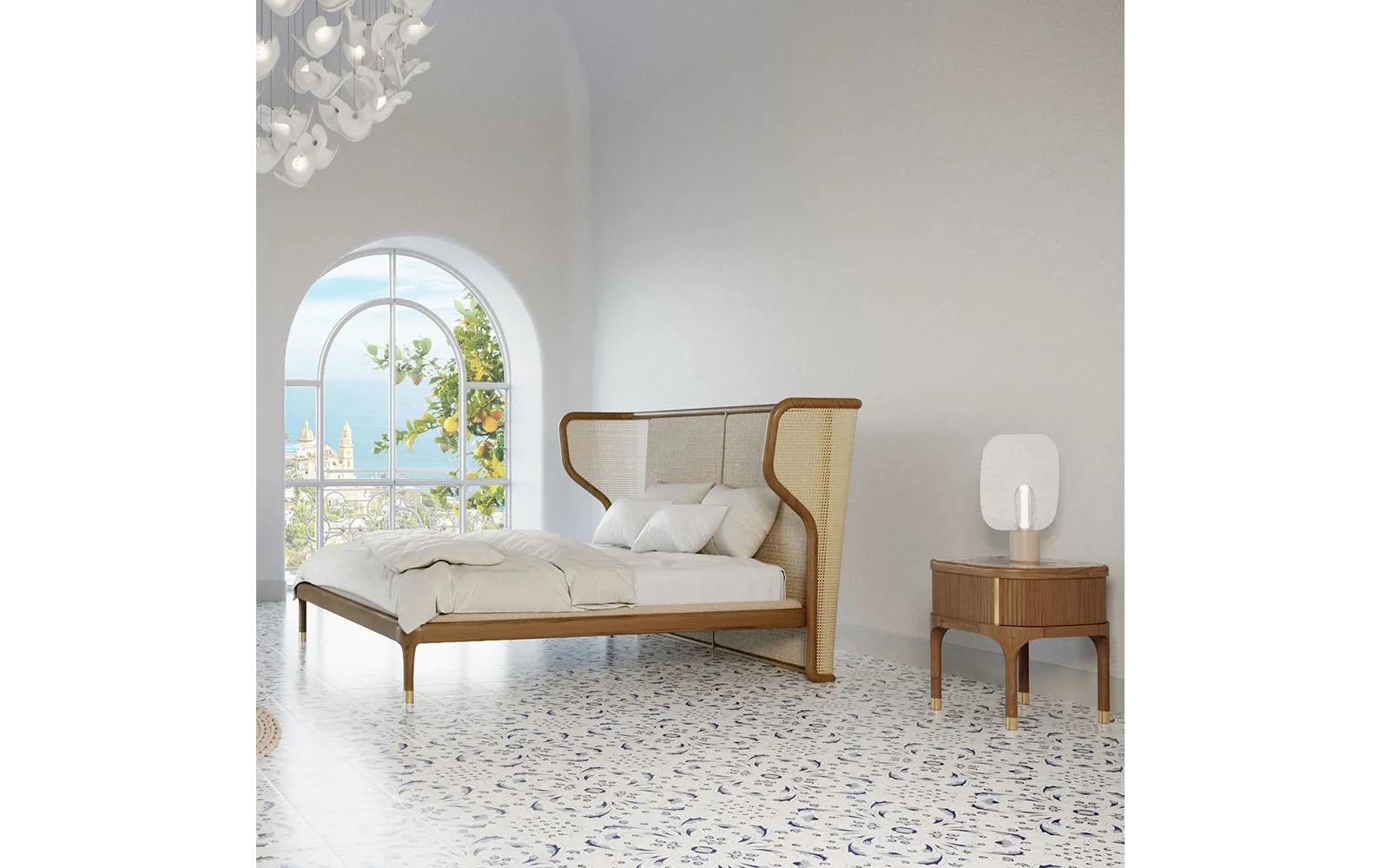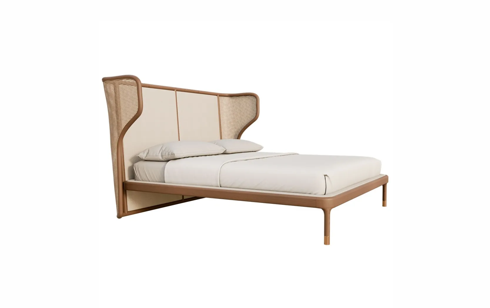 Joyce от Morelato — это элегантная двуспальная кровать с ретро-акцентами, созданная для тех, кто ценит утонченность и уют. Отличительной чертой модели является объемное обитое изголовье, сочетающее мягкую обивку в центре с боковыми вставками из венской соломы. Структура из токарного ясеня обволакивает каркас, интегрируя матрас в единое целое, а токарные ножки с латунными наконечниками добавляют блеска и изыска. Joyce идеально вписывается в премиальные спальни, создавая атмосферу расслабленного отдыха и итальянской роскоши.
