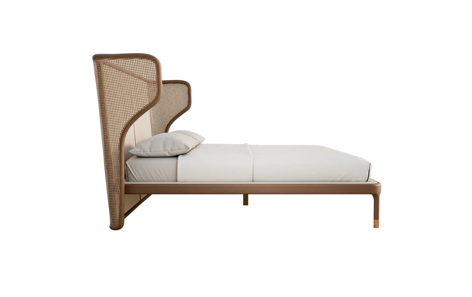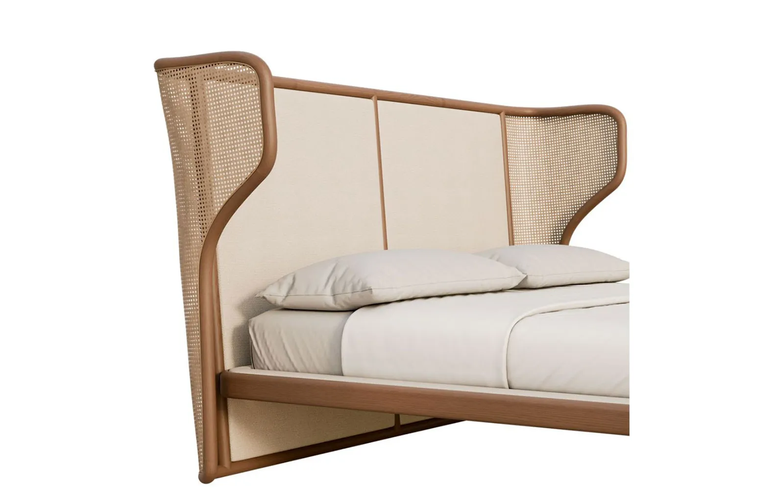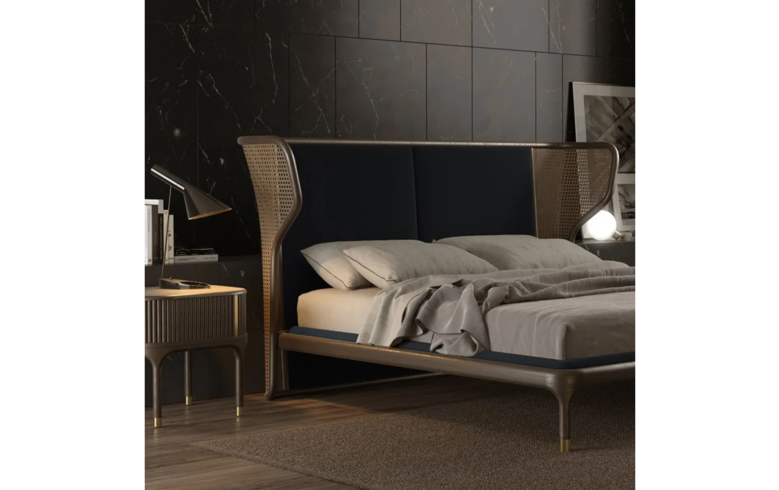 - Объемное изголовье: Мягко изогнутая форма с центральной обивкой и венской соломой по бокам придает ретро-вкус и текстурный контраст.