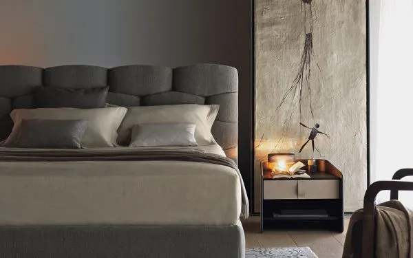 Элегантная двуспальная кровать Majal изготовлена известным итальянским брендом Flou. Дизайн разработал Карло Коломбо. Мебель отличается оригинальной формой изголовья; составленного из мягких геометрических фрагментов. В производстве использован высококачественный плотный текстиль и набивной материал.