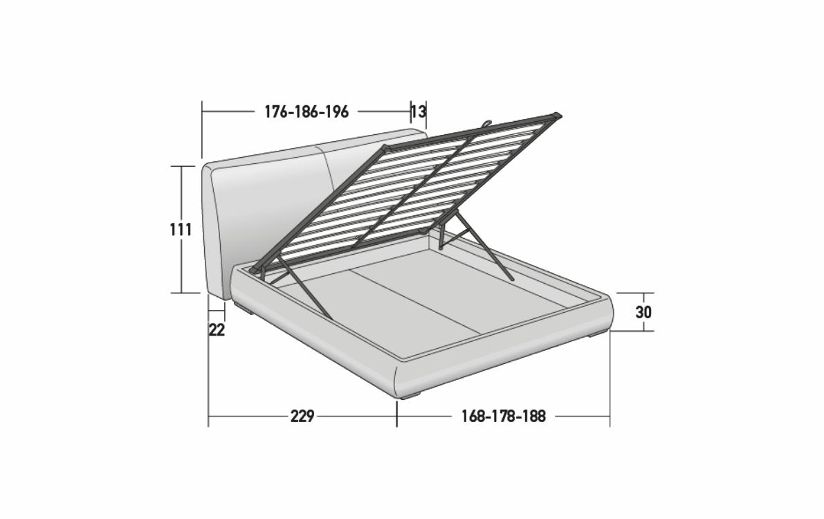 Размеры кроватей: 196 х 229 х 111 см. С контейнерами для хранения с подъемным механизмом.