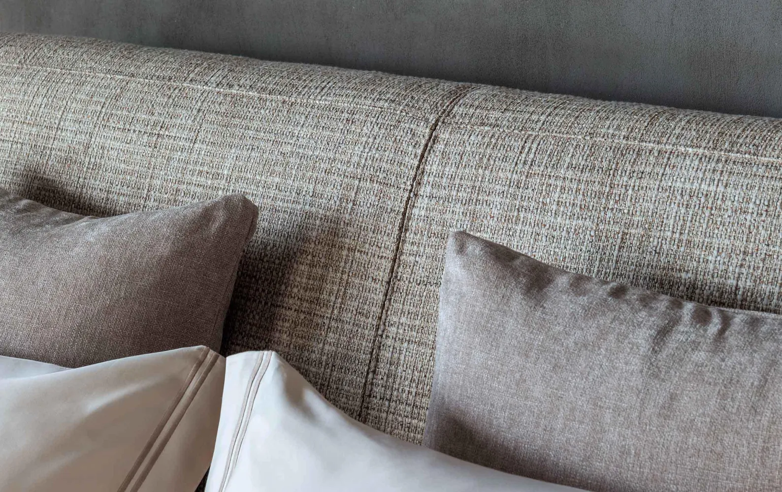 У второго варианта отделки ткань изготовлена из тщательно отобранной и смешанной натуральной пряжи. Жаккардовое плетение создает дизайн, который предлагает особые отражения света, приятный на ощупь и идеальный баланс между холодными оттенками серого и теплыми оттенками натуральных цветов.