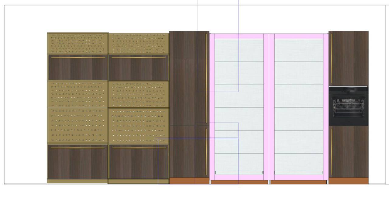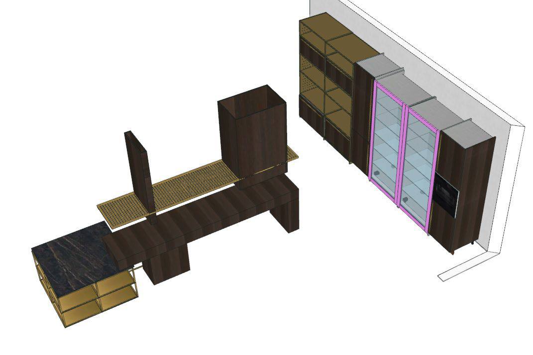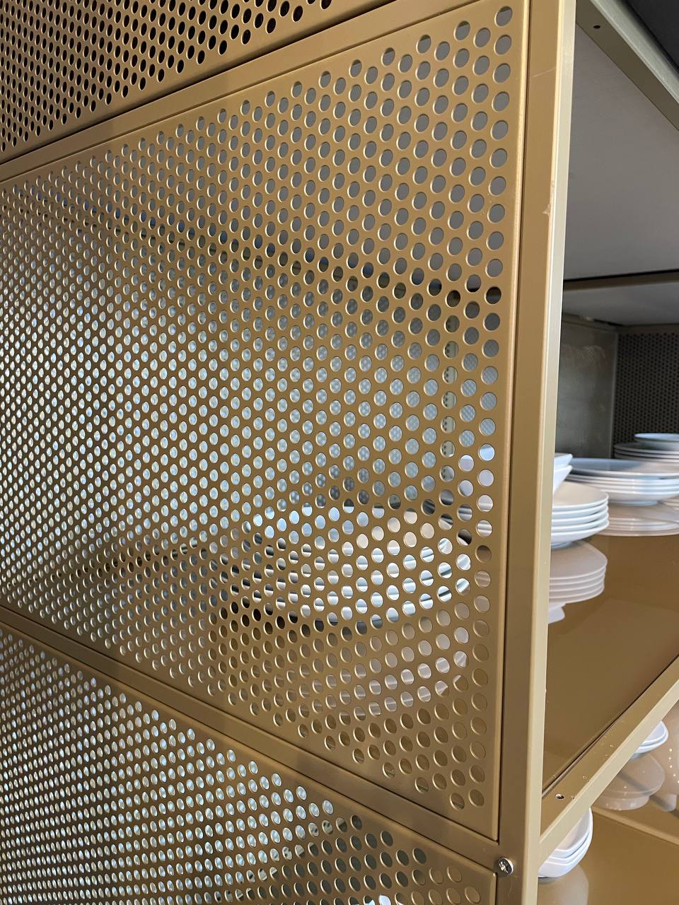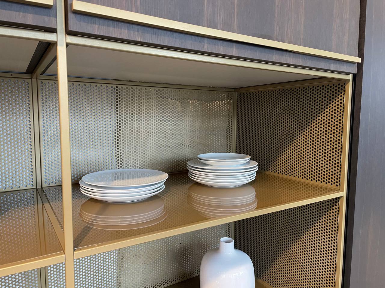 Композиция каждой кухни BELUGA строится на двух фундаментальных концепциях, первая – это добавление света в качестве четвертого измерения пространства, которая создает хроматический и материальный баланс между ритмичными линиями металлического каркаса, видимой и реальной прочностью двери из термообработанного дуба и плоскостями перфорированного листового металла – легкого элемента, который обеспечивает слияние со светом.