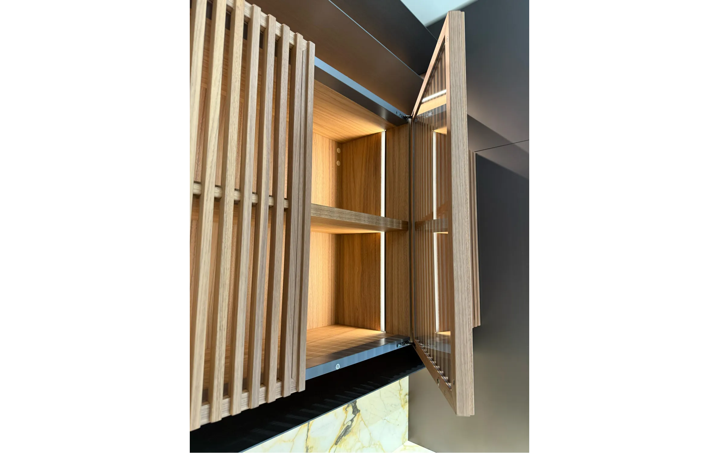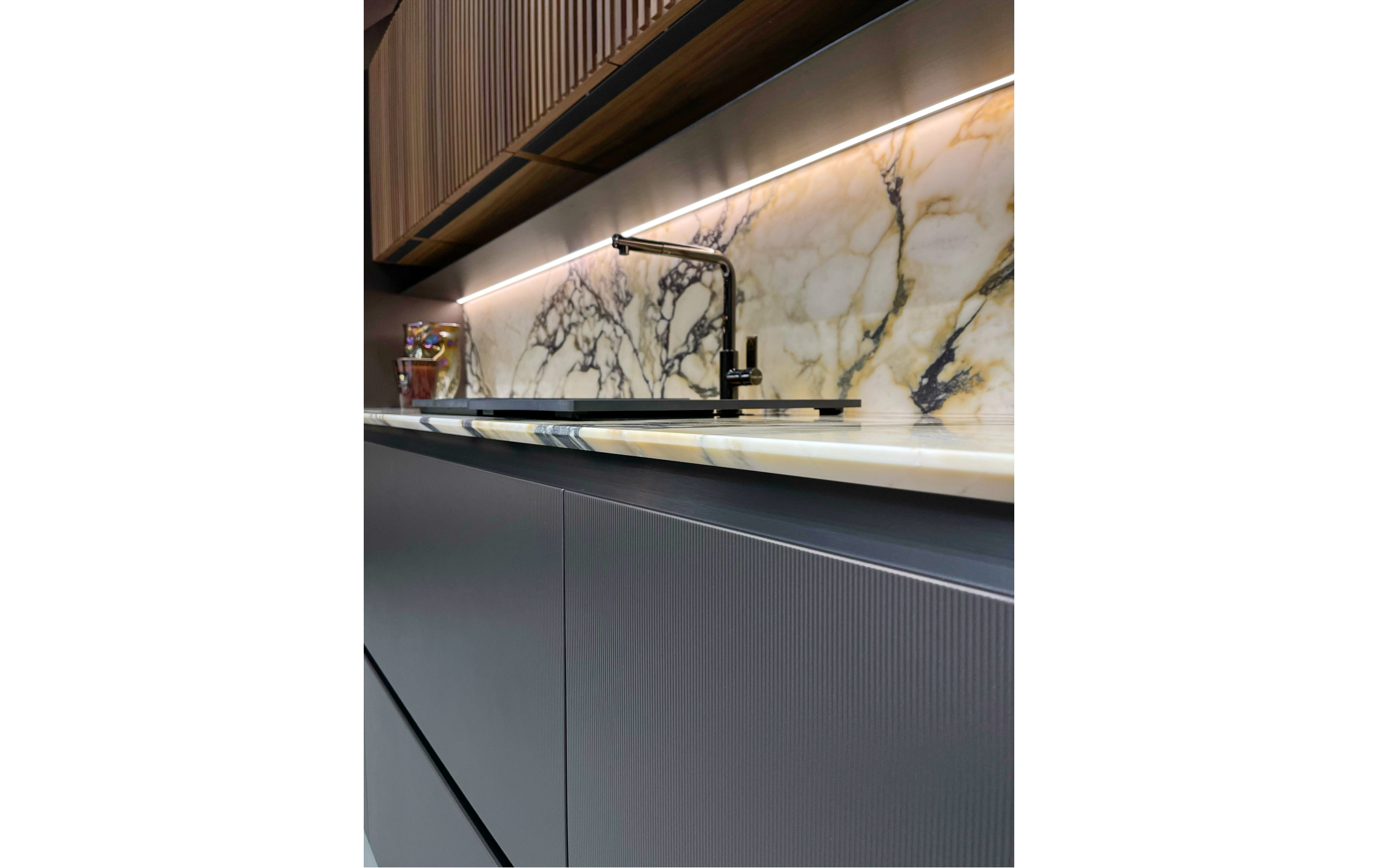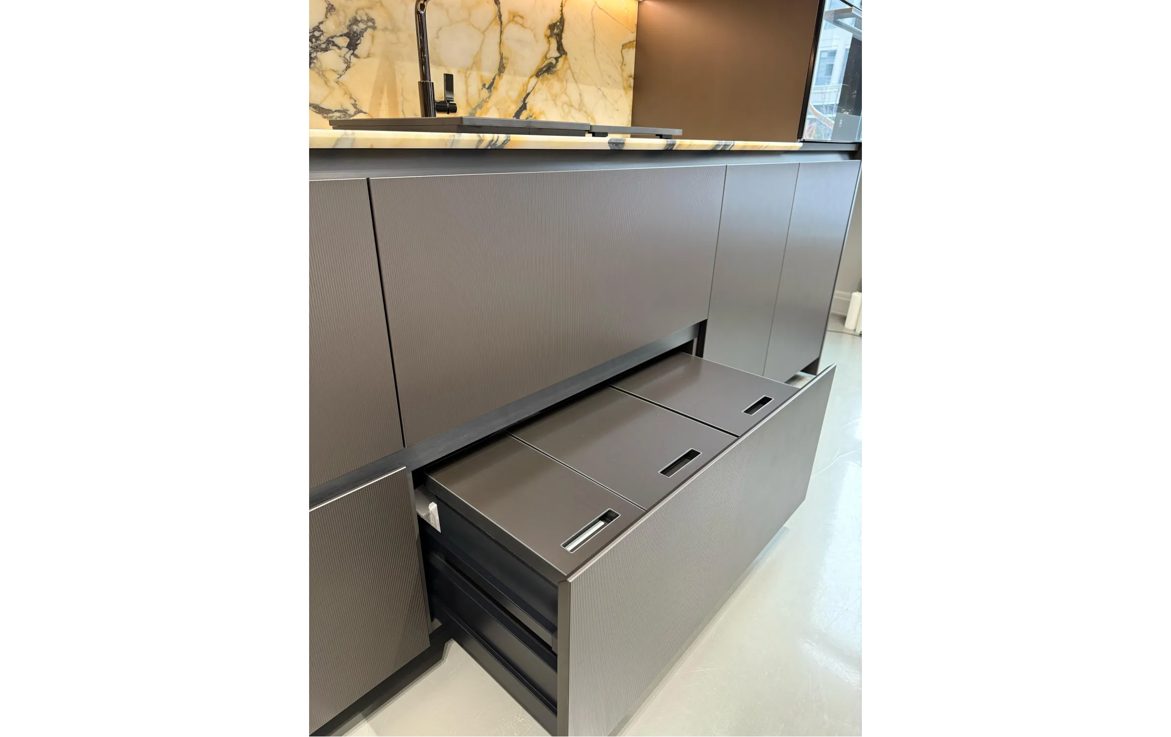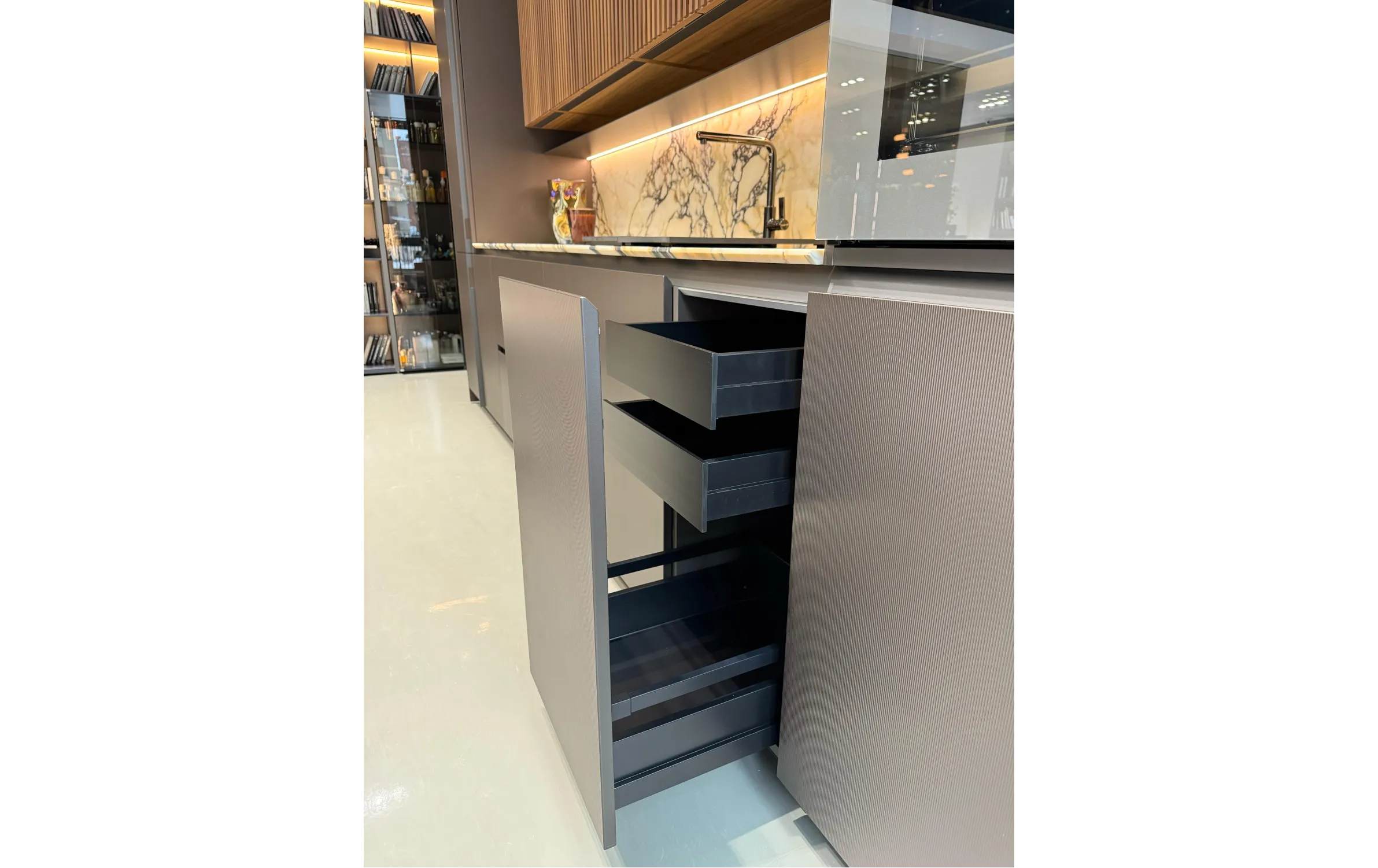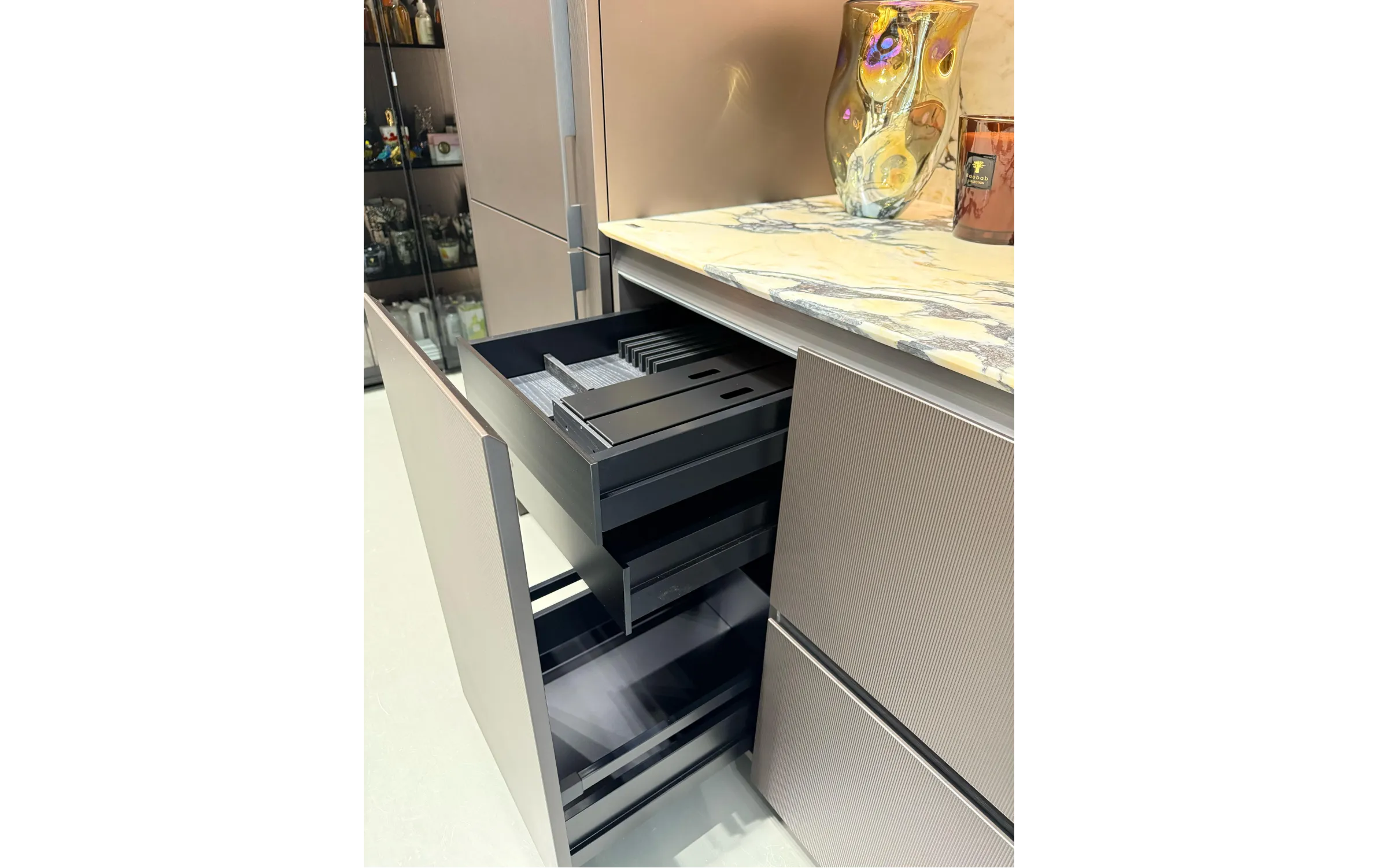 Кухня Prime, разработанная Dada Engineered R&D, наполнена ящиками Vionaro, что делает композицию еще более качественной и функциональной. Эксклюзивный механизм Vionaro с запатентованной черной анодированной алюминиевой отделкой гарантирует исключительную производительность ящиков и практичность.