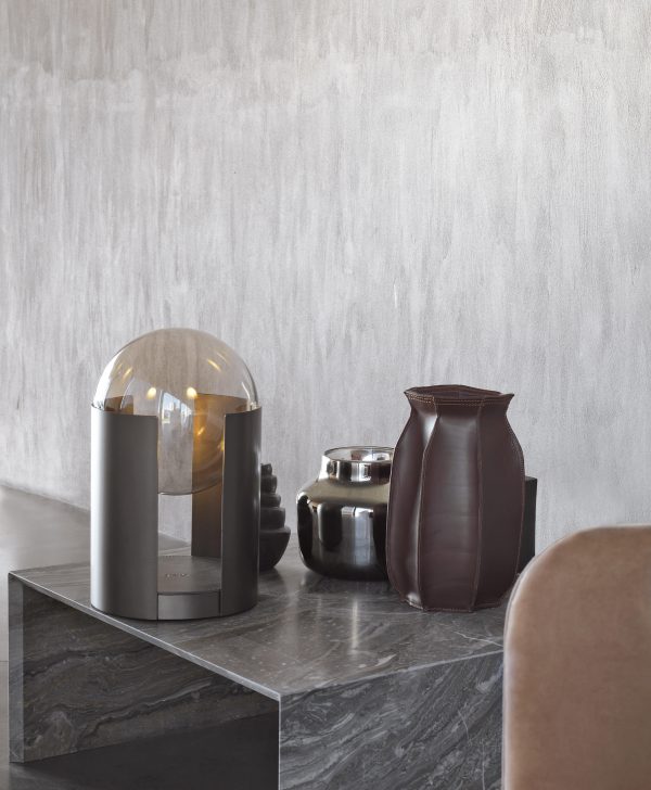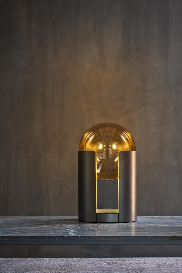 Светодиодная лампа поставляется в виде стандартной или настольной лампы. Рама из листовой стали с графитовой или бронзовой отделкой и базовым диском в коже.