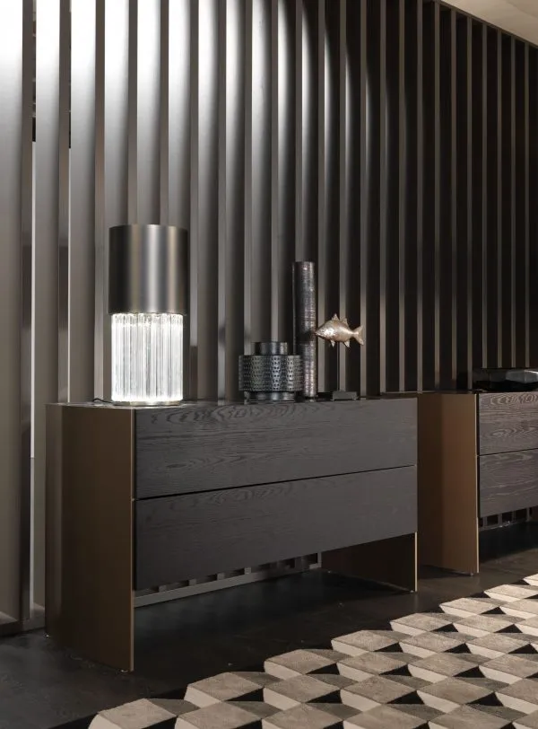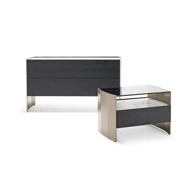 Набор Milvian для спальной зоны; состоящий из прикроватных тумбочек двух разных размеров и комода; может похвастаться утонченным стилем. Оригинальное сочетание эксклюзивного дизайна и изысканных строительных деталей. Структура; выполненная из дуба; обрамлена фасонными плечами; которые спускаются на землю; превращаясь в изящные ступни. Эстетичность; которая дополняется тонким деревянным верхом; доступным в многочисленных вариантах отделки; не подрывает его функциональность: версия с выдвижным ящиком и отделением напоминает версию с фиксированной передней частью; которая идеально подходит для двустороннего использования. Со вкусом сбалансированный и скоординированная связь для спальной зоны.