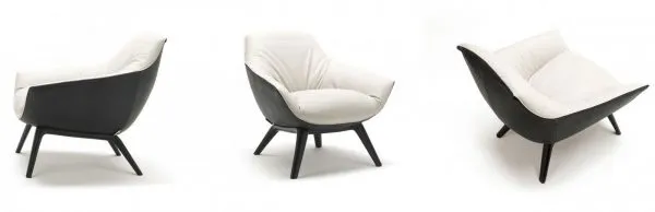 Наклонные ножки придают особую оригинальность модели и увеличивают устойчивость конструкции. В производстве использован полиуретановый каркас, вставки из пенопласта, обивка из кожи, эко-кожи или текстиля. Предлагаем различные варианты дизайна: однотонное или комбинированное оформление передней и задней части кресла. В коллекции представлены разновидности этой модели с каркасом из натуральной древесины.