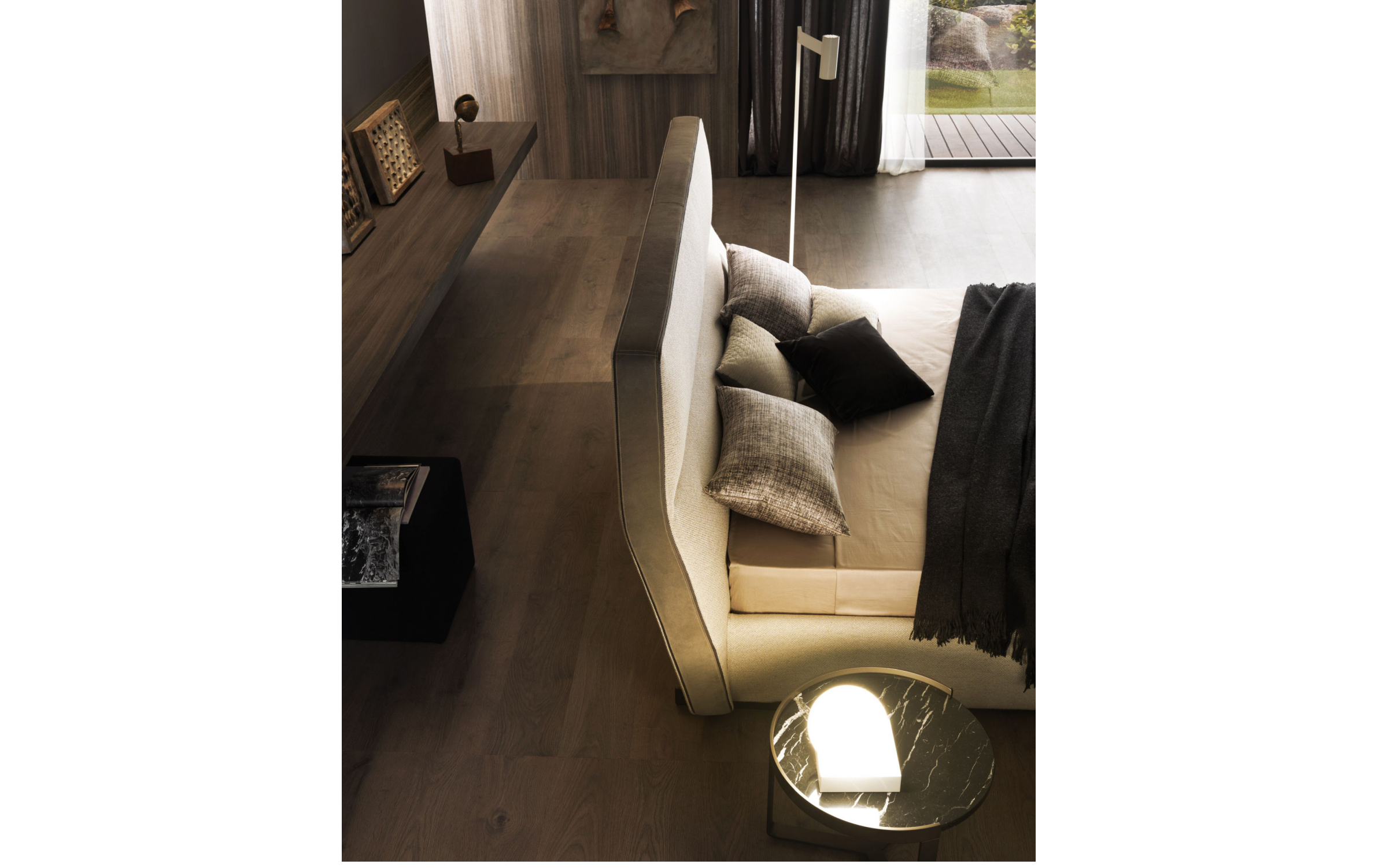 Кровать Cosy гармонично сочетает удобные объемы и премиальные материалы. Обивка может быть выполнена из текстиля, экокожи или натуральной кожи, а возможность комбинирования различных отделок позволяет подчеркнуть индивидуальный стиль интерьера.