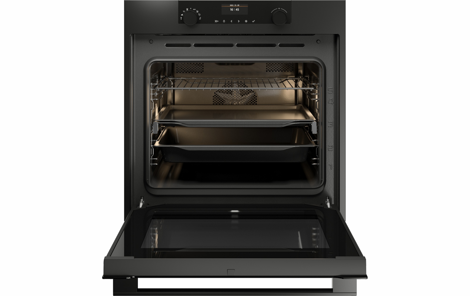 Благодаря функции плавного закрывания дверцы вы сможете легко и аккуратно закрыть дверцу духового шкафа, даже если у вас заняты руки. Долговечные амортизаторы встроены в дверные шарниры.
