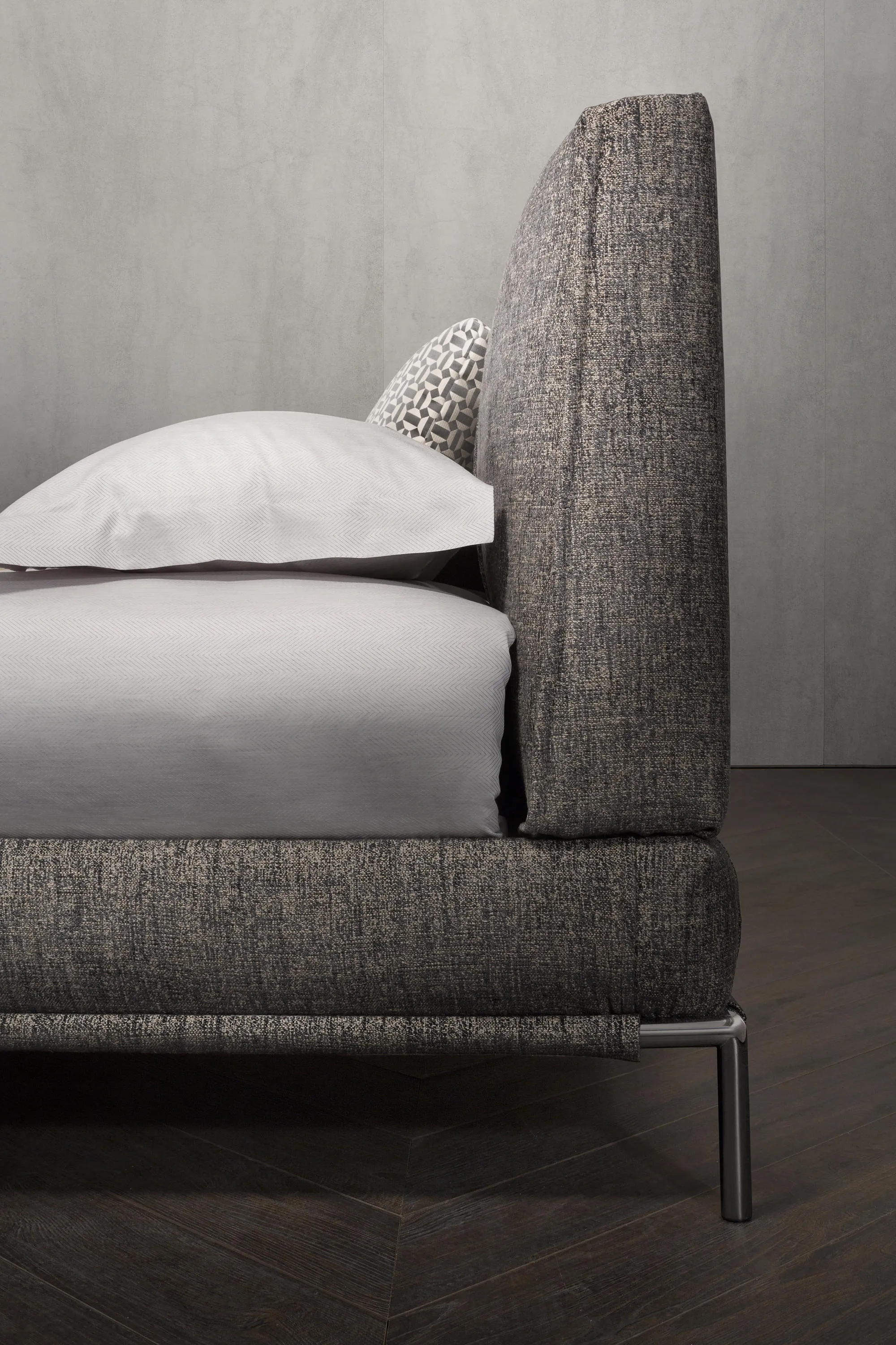 Приобретите стильную двуспальную кровать Icon с мягким изголовьем, созданную известным итальянским дизайнером Карло Коломбо для бренда Flou. Каркас кровати, выполненный из дерева, полностью скрыт под высококачественной обивкой из ткани или натуральной кожи, доступной в различных цветах. Внутреннее наполнение изголовья изготовлено из минималистского пенополиуретана. Тонкие профилированные ножки из полированного металла создают впечатление легкости и элегантности.