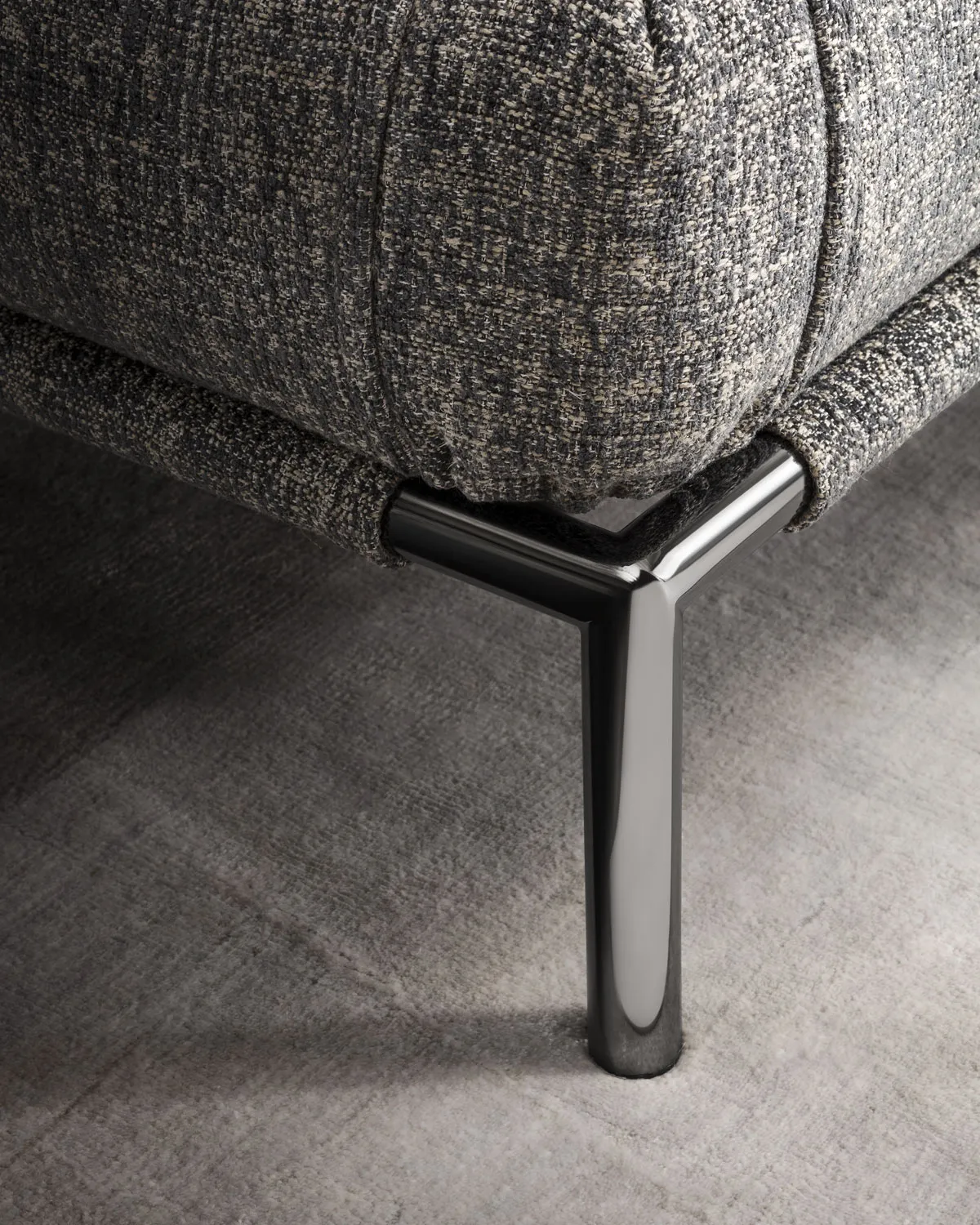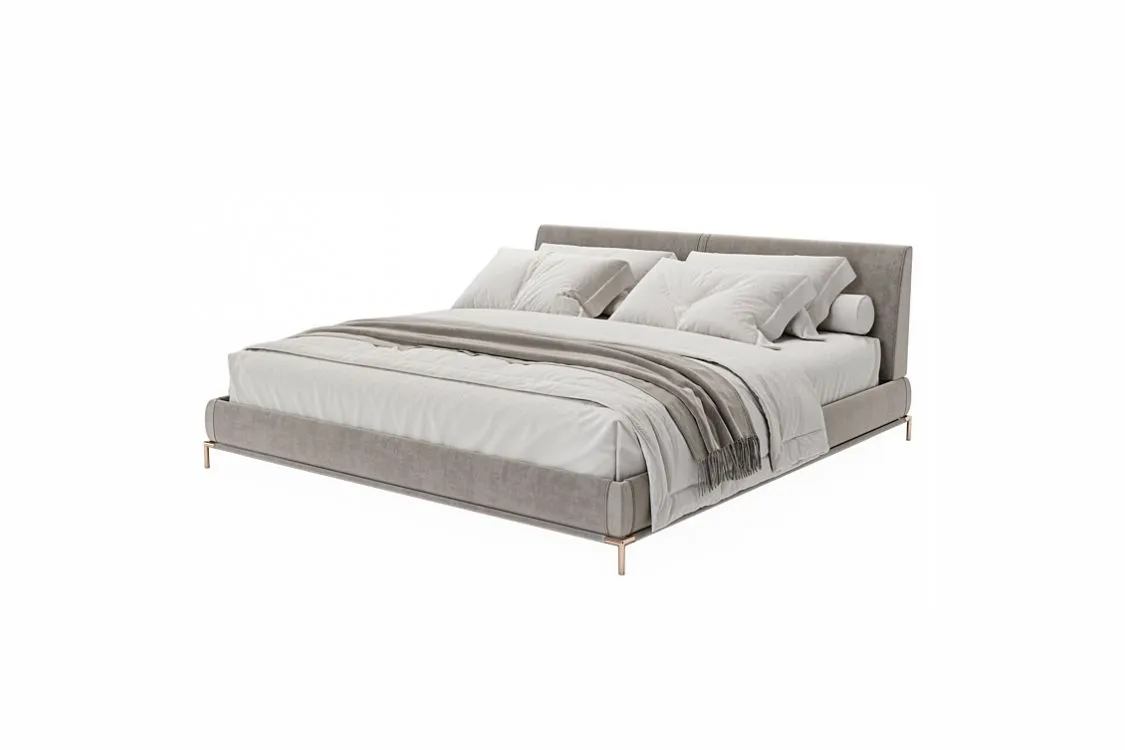 Жёсткая лаконичность в деталях, высокие металлические ножки, сочетающиеся с базой под матрас. Обивка, легко снимаемая и доступная в вариантах кожи или ткани. Подходит для матрасов размерами 160, 170, 180 и 200 см.