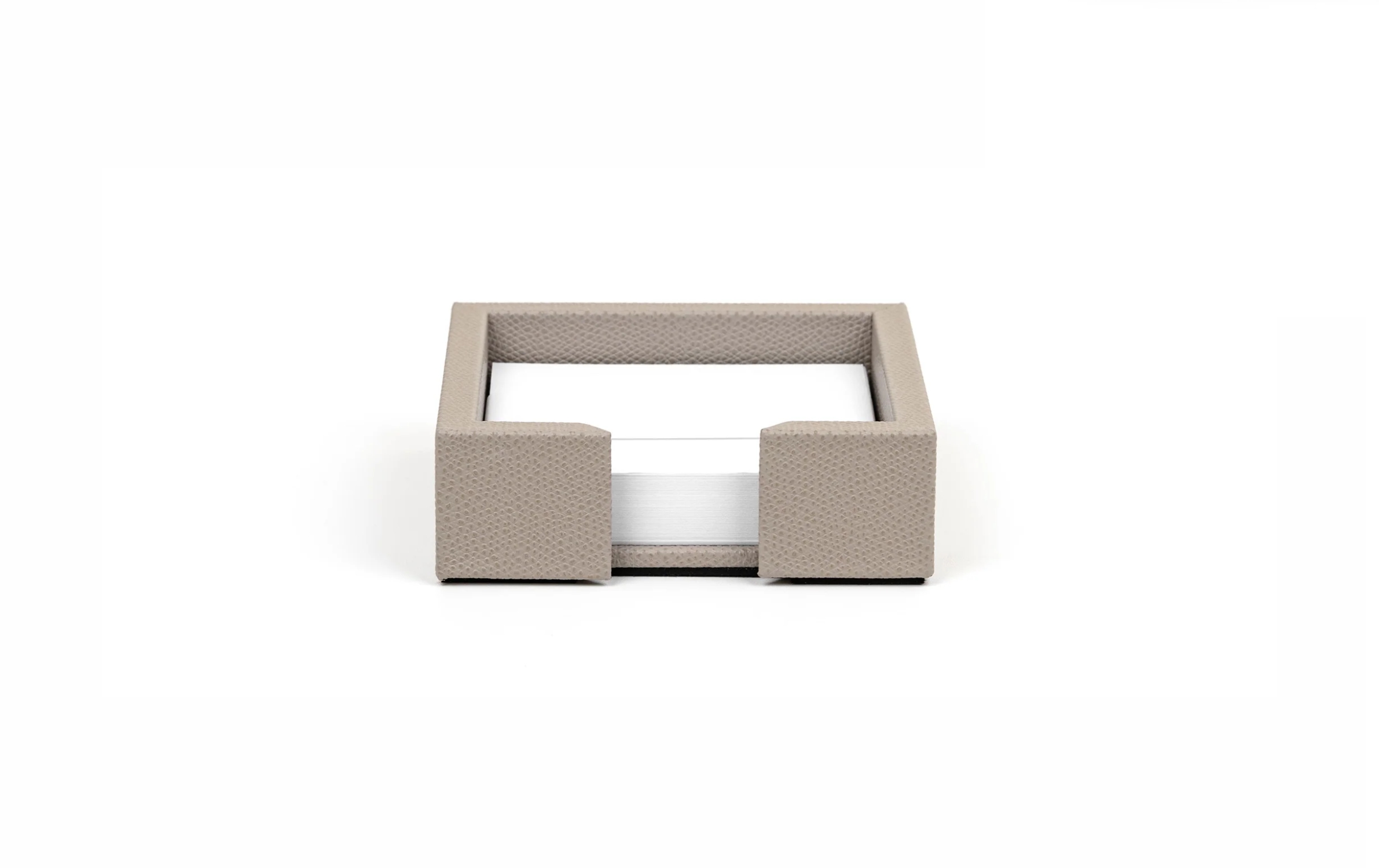 Базовая прямоугольная конструкция с углублением на торце, позволяющим легко вытаскивать новые страницы. Прочная деревянная конструкция обтянута высококачественной, устойчивой к царапинам телячьей кожей. Держатель для бумаги с включенным в комплект блоком белой бумаги идеально подходит для любого стиля письменного стола. Сочетайте его с другими настольными принадлежностями, чтобы организовать и украсить ваш стол.