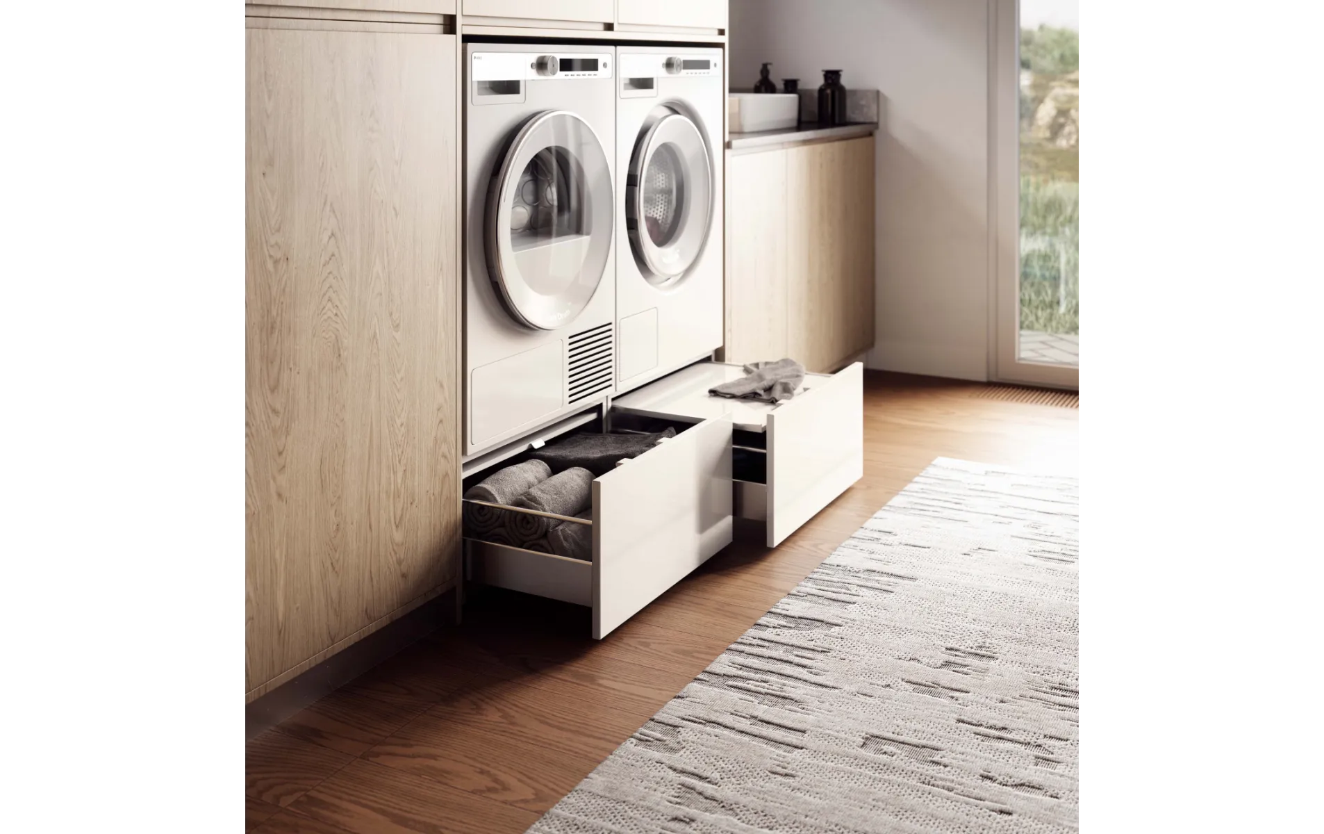Напольный ящик с выдвижной полкой Asko HPS5323W устанавливается под стиральную или сушильную машину.