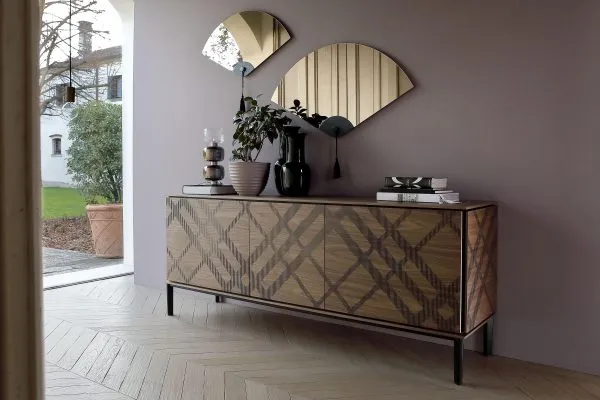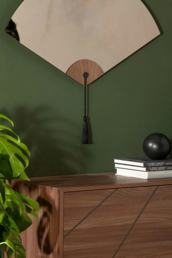 Зеркало WINDERLY от итальянского бренда Tonin Casa похоже на веер – великолепный объект с мифической легкостью; на котором размещается отражаемый свет; и которое увеличивает любой интерьер; в котором оно находится. Winderly – зеркало; которое опирается на деревянную конструкцию; и простота которого обогащается великолепной черной натуральной замшей.