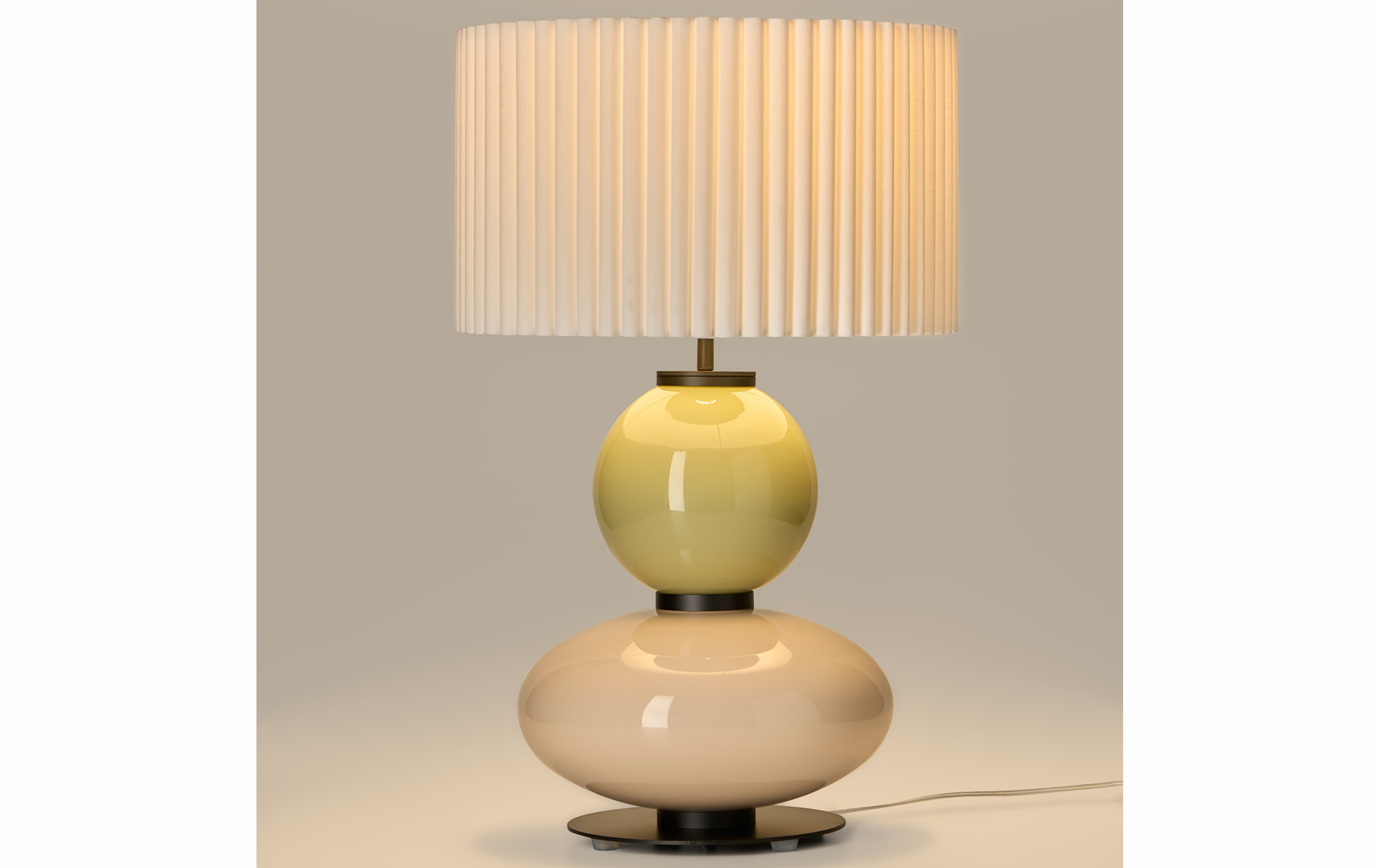 Mapi от Aromas Del Campo — это утонченная настольная лампа, созданная AC Studio, сочетающая минималистичный дизайн с выразительными материалами. Стальной каркас в матовом черном цвете и стеклянные элементы, доступные в различных оттенках, создают элегантный контраст, подчеркивающий современную эстетику. Без абажура (рекомендуется модель 4025), Mapi излучает мягкий, направленный свет, идеально подходящий для гостиных, спален или премиальных офисов. Эта лампа — не просто источник света, а стильный акцент для любого интерьера.