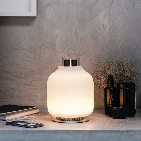 Для Candela Астеп разработал новую систему сбора энергии; которая вырабатывает электричество из тепла пламени благодаря термоэлектрическому эффекту Зеебека. Работая на биоэтаноле; чистом; натуральном и возобновляемом топливе; производимом из растений; Candela вырабатывает собственное электричество для создания уютного светодиодного освещения и зарядки мобильных устройств через USB.