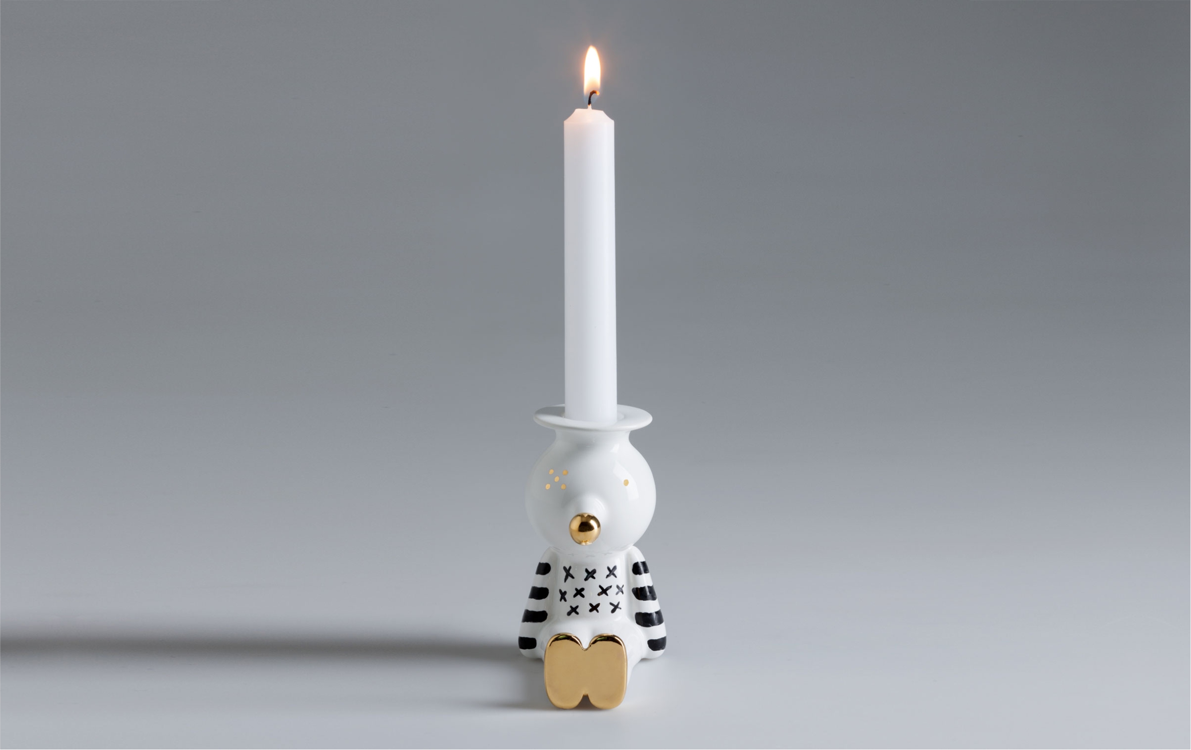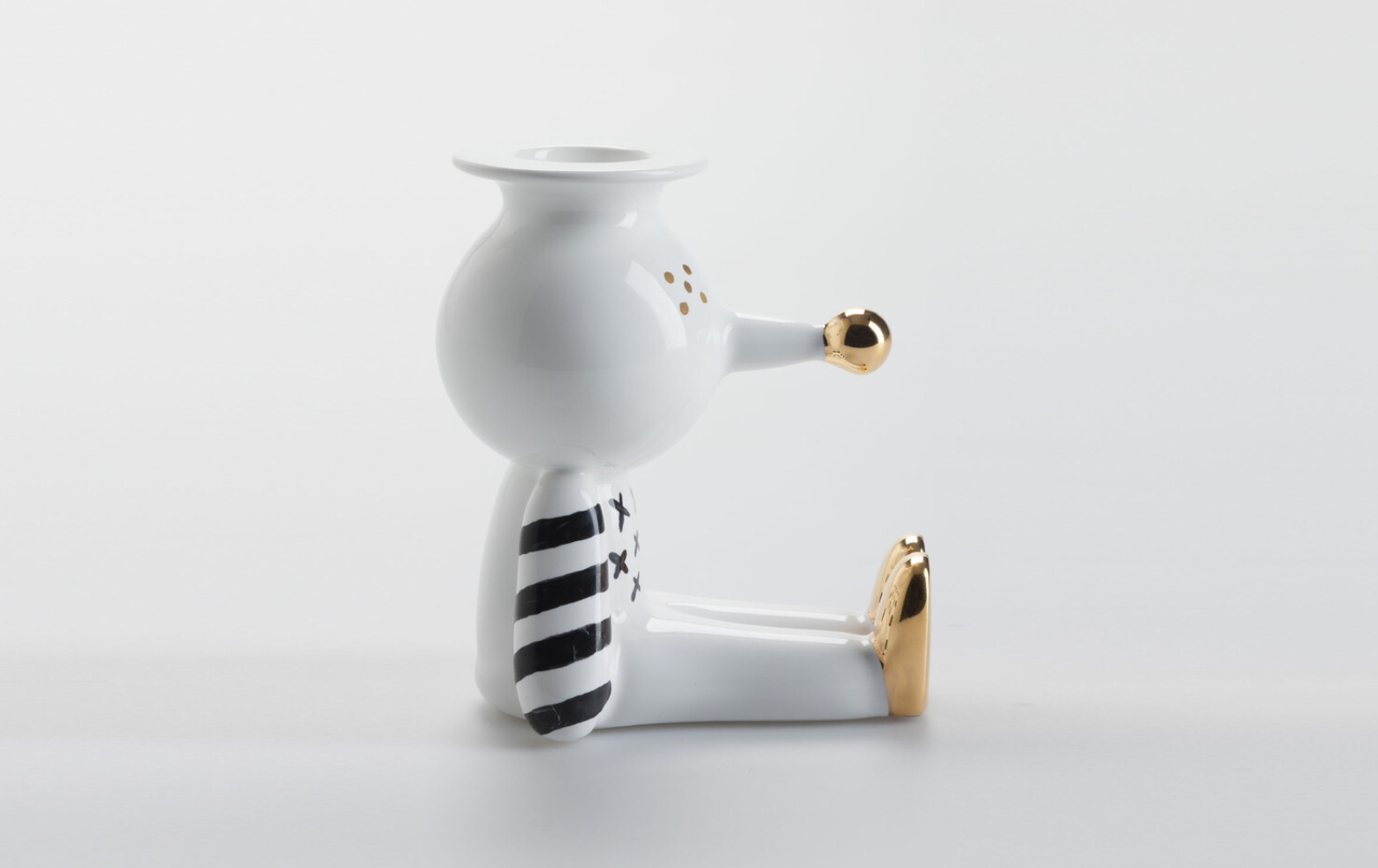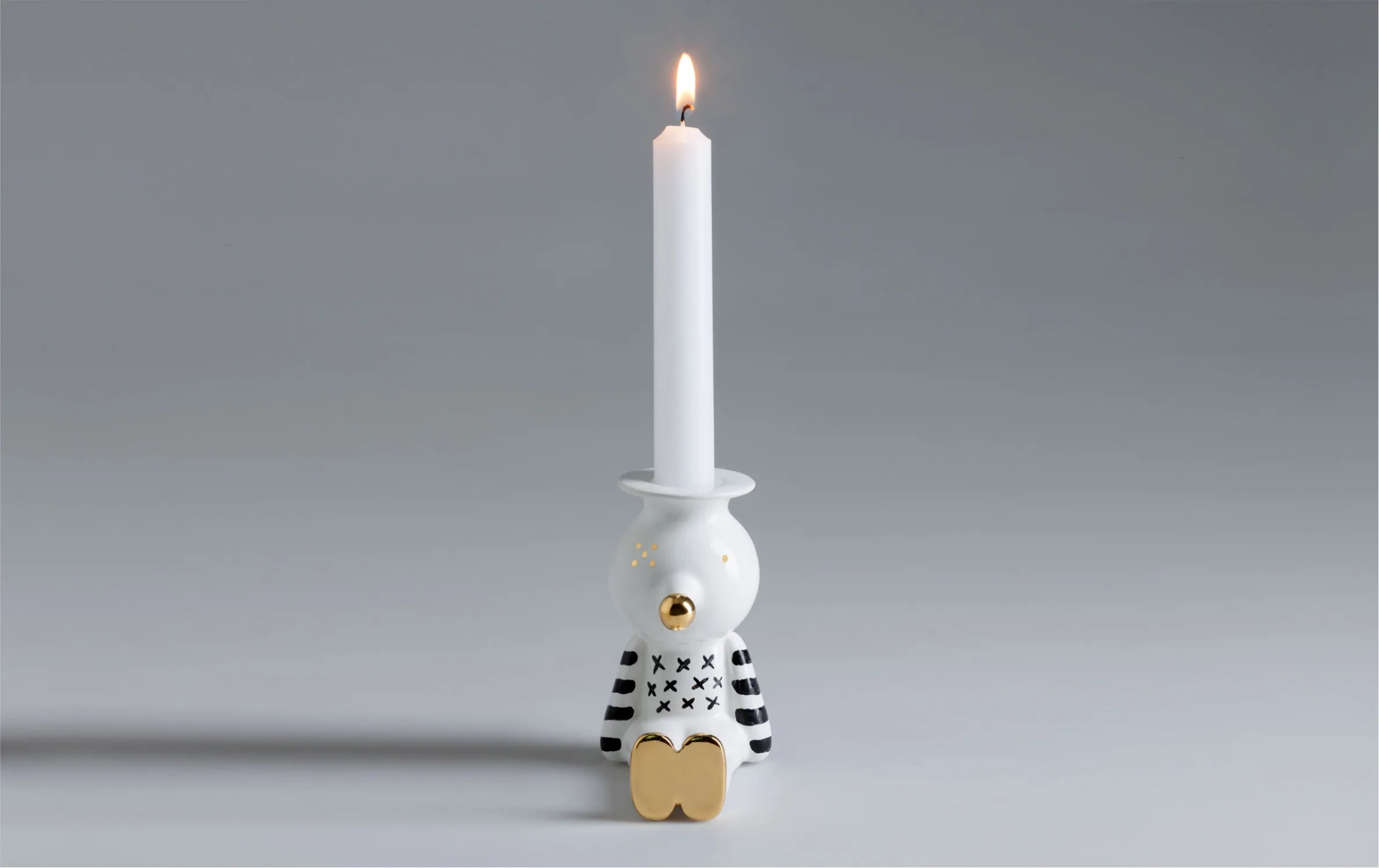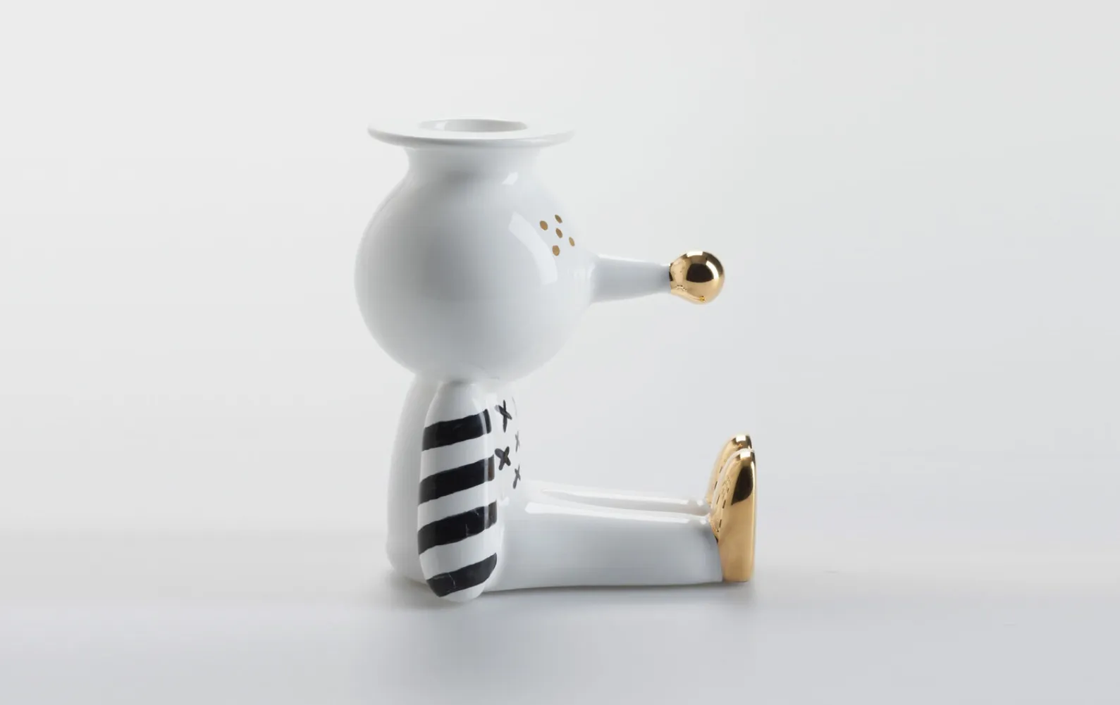 PINOCCHIETTO CANDLEHOLDER – это уникальный подсвечник из керамики, созданный знаменитым дизайнером Jaime Hayon для итальянского бренда Bosa. Этот предмет искусства вдохновлен образом сказочного Пиноккио, превращая классический интерьерный аксессуар в оригинальный ироничный акцент. PINOCCHIETTO выполнен из белой керамики с тончайшей ручной росписью. Контрастные глянцевые черные и золотые детали подчеркивают его выразительную эстетику. Форма подсвечника напоминает маленькую куклу Пиноккио, создавая ассоциации с миром детства, театром и художественным сюрреализмом.