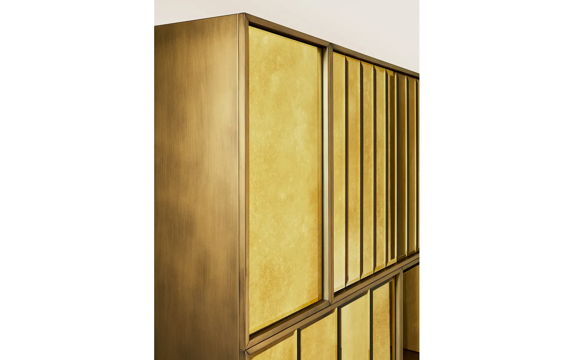 Дизайнерский комод WOLFANG от Andrea Parisio — это гармония футуристичных мотивов, сдержанной роскоши и минималистичной эстетики. Благодаря шести просторным секциям из массива дерева, модель сочетает стиль и практичность, идеально вписываясь в интерьер гостиной, спальни или прихожей. Сдержанная матовая лакировка подчеркивает природную текстуру дерева, а внутреннее покрытие ниш в черном или бронзовом латунном оттенке придает изделию выразительный характер. Дверцы оформляются матовым или глянцевым лаком в одной из 12 эксклюзивных расцветок либо декорируются бронзированным лакированным зеркалом.